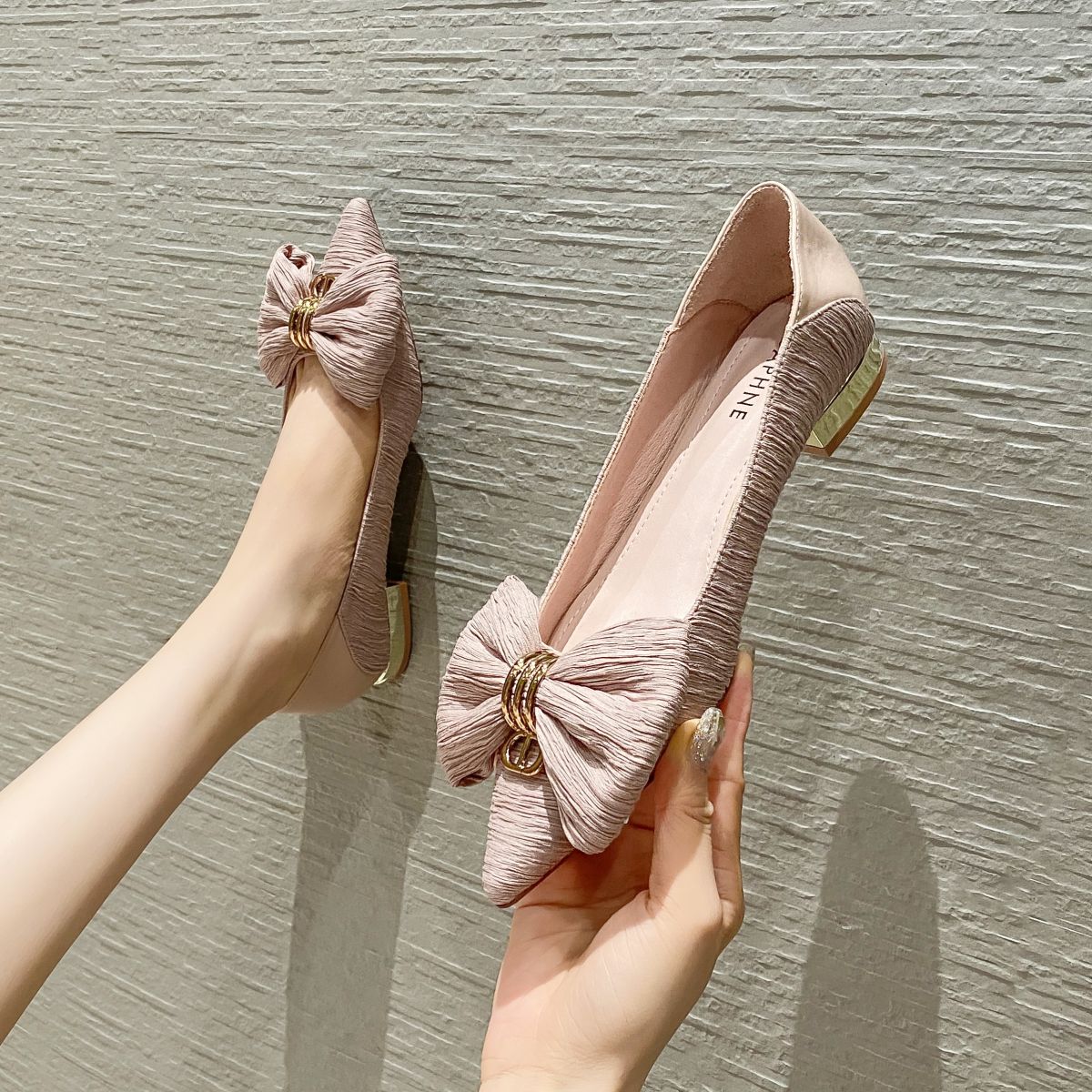 【热卖爆款】夏季女单鞋气质温柔高跟鞋通勤鞋蝴蝶结百搭时尚 646039