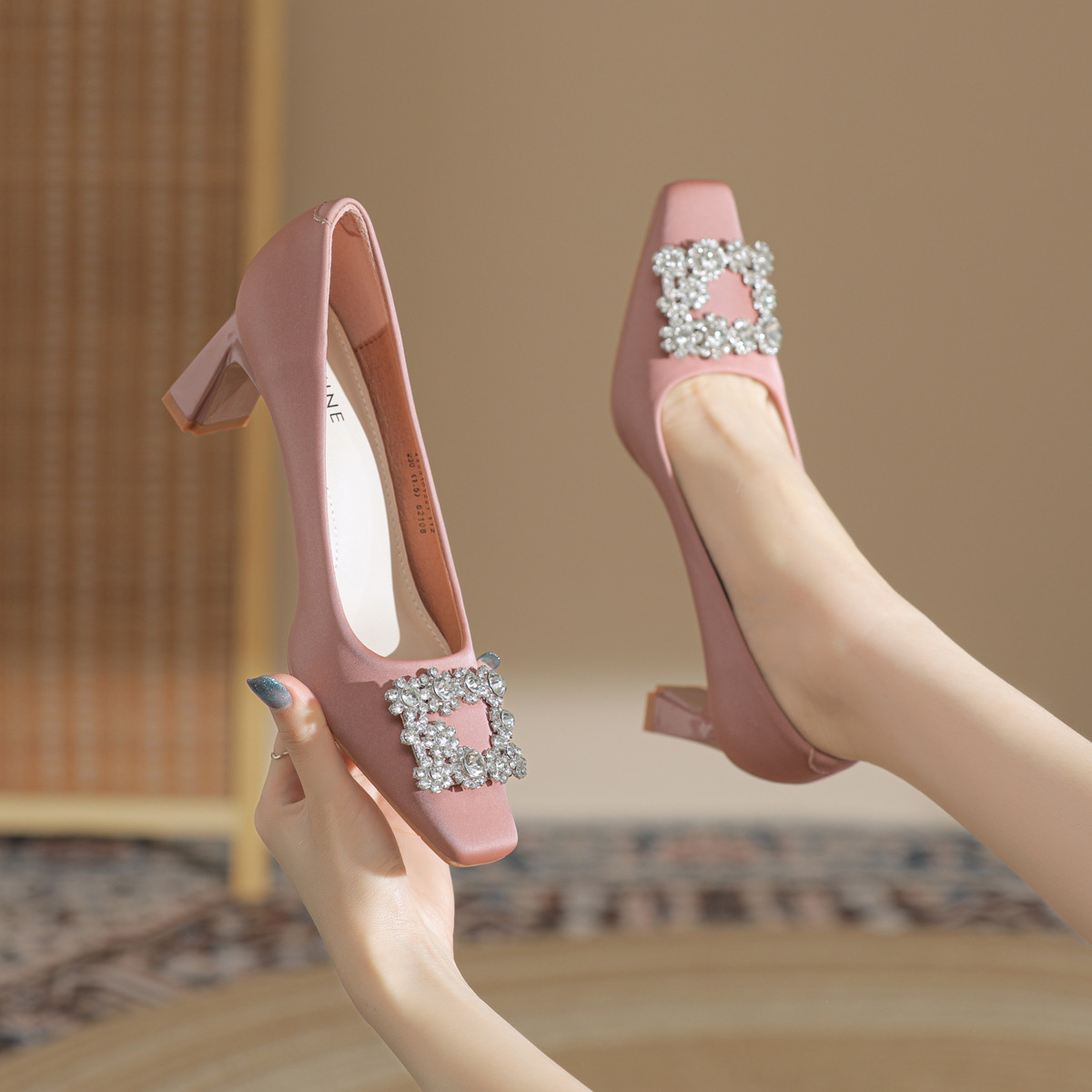 【热卖爆款】高跟鞋女25新款春夏法式气质方头通勤粗跟单鞋女 841047
