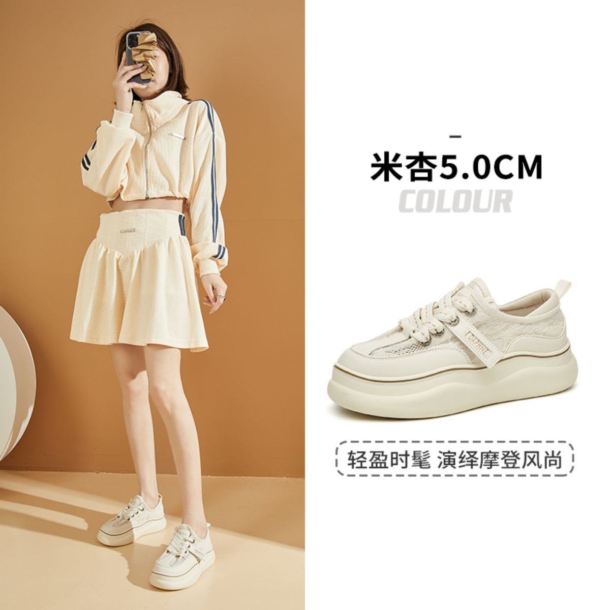 【新中式国风】夏季透气轻薄小白鞋女时尚板鞋厚底鞋网面休闲鞋 263383