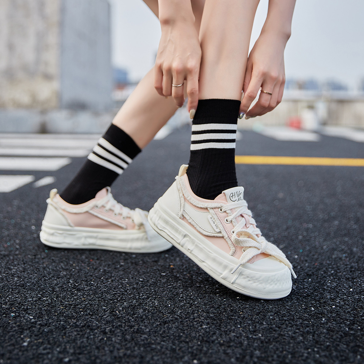 春潮流厚底撞色双鞋带板鞋百搭休闲鞋舒适小白鞋女 317057