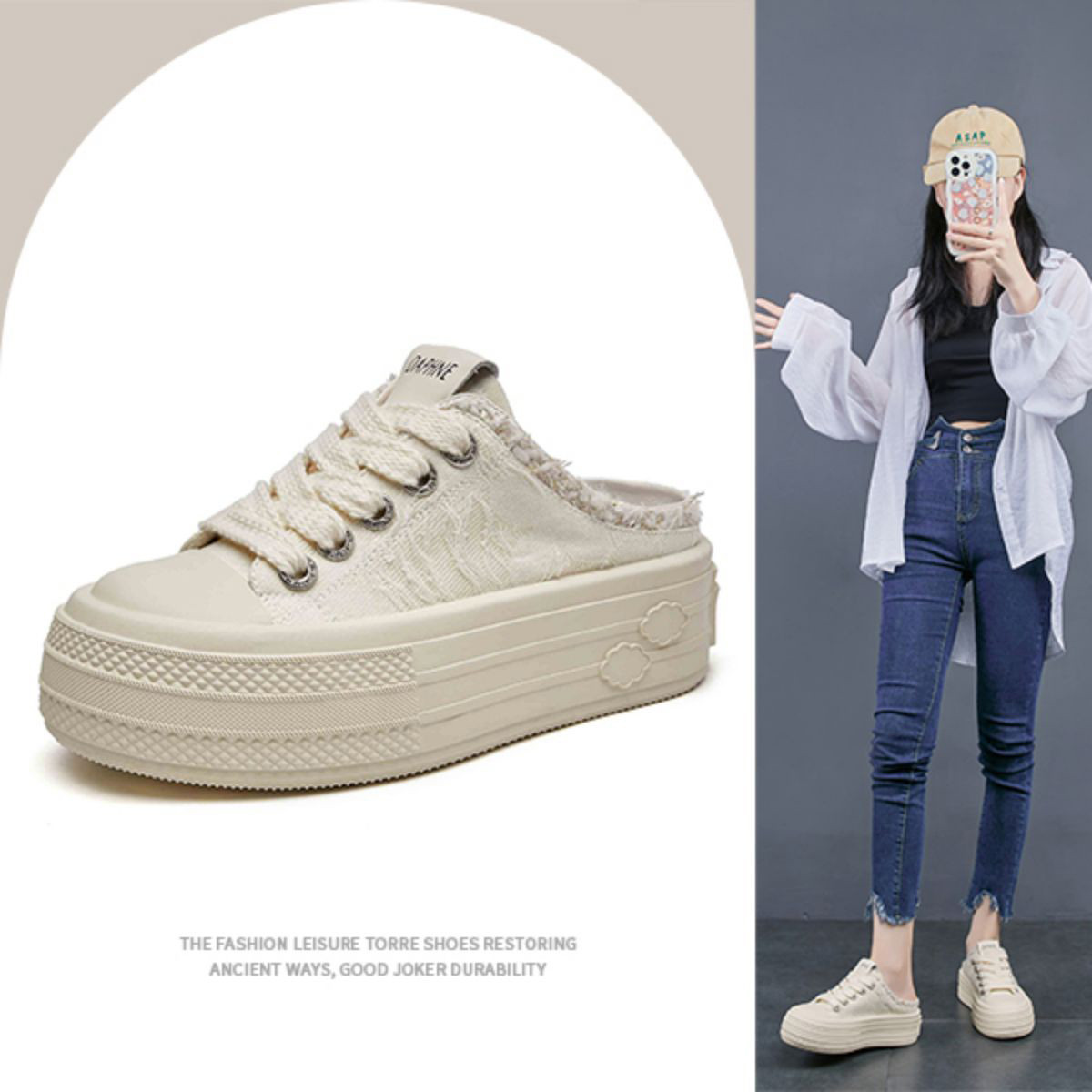 【热卖爆款】春夏女休闲鞋板鞋半拖款帆布鞋懒人鞋一脚蹬 964183