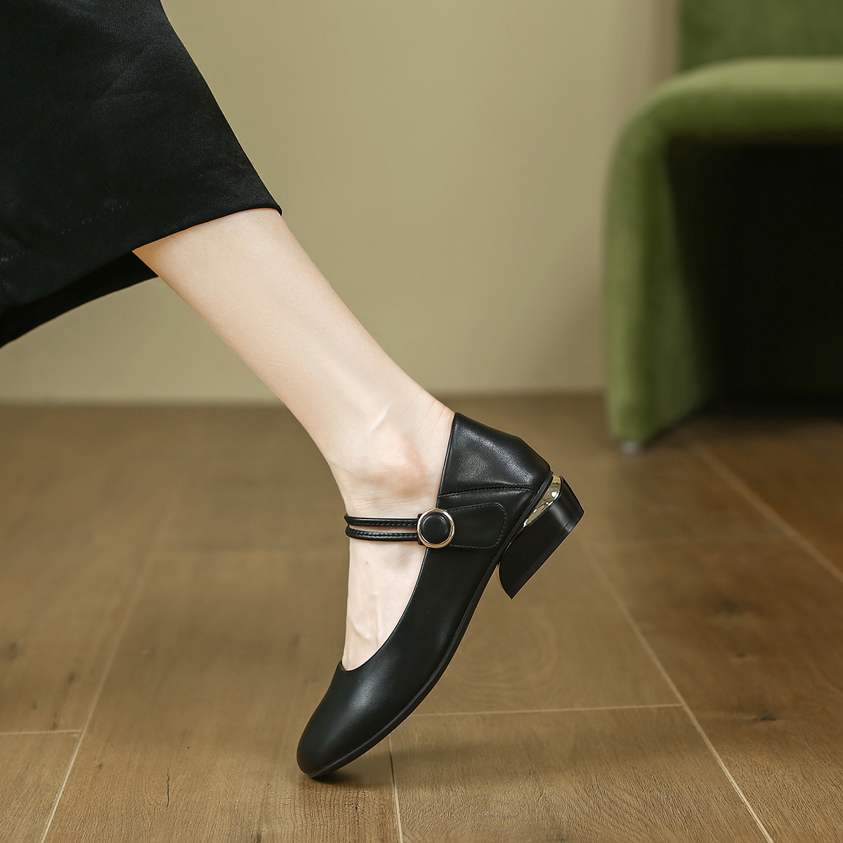 【气质搭扣】粗跟通勤鞋女一脚蹬玛丽珍女小皮鞋子女单鞋夏季女鞋 312704