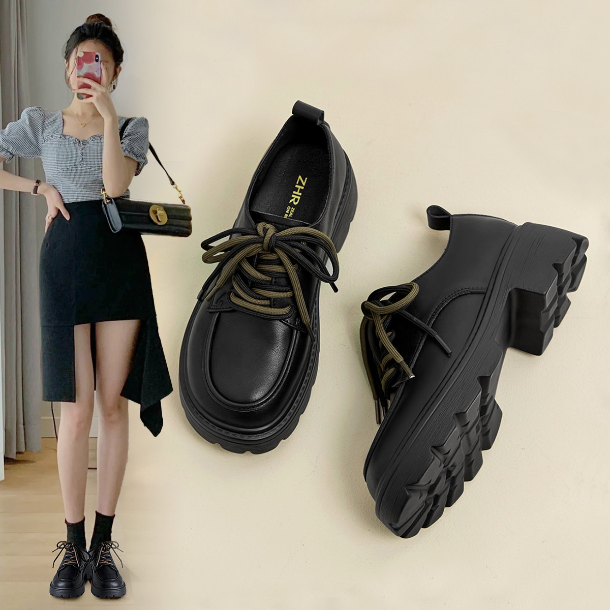 【牛剖层革】百搭英伦风小皮鞋子女单鞋通勤鞋春秋厚底乐福鞋女鞋 837568