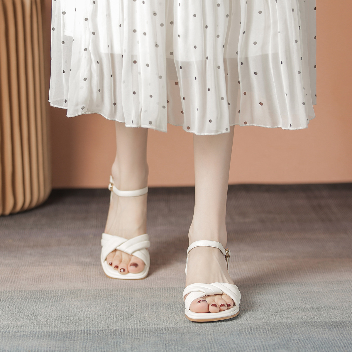 【气质方头】高级一字带凉鞋百搭高跟粗跟凉鞋女士凉鞋夏季女凉鞋 070080
