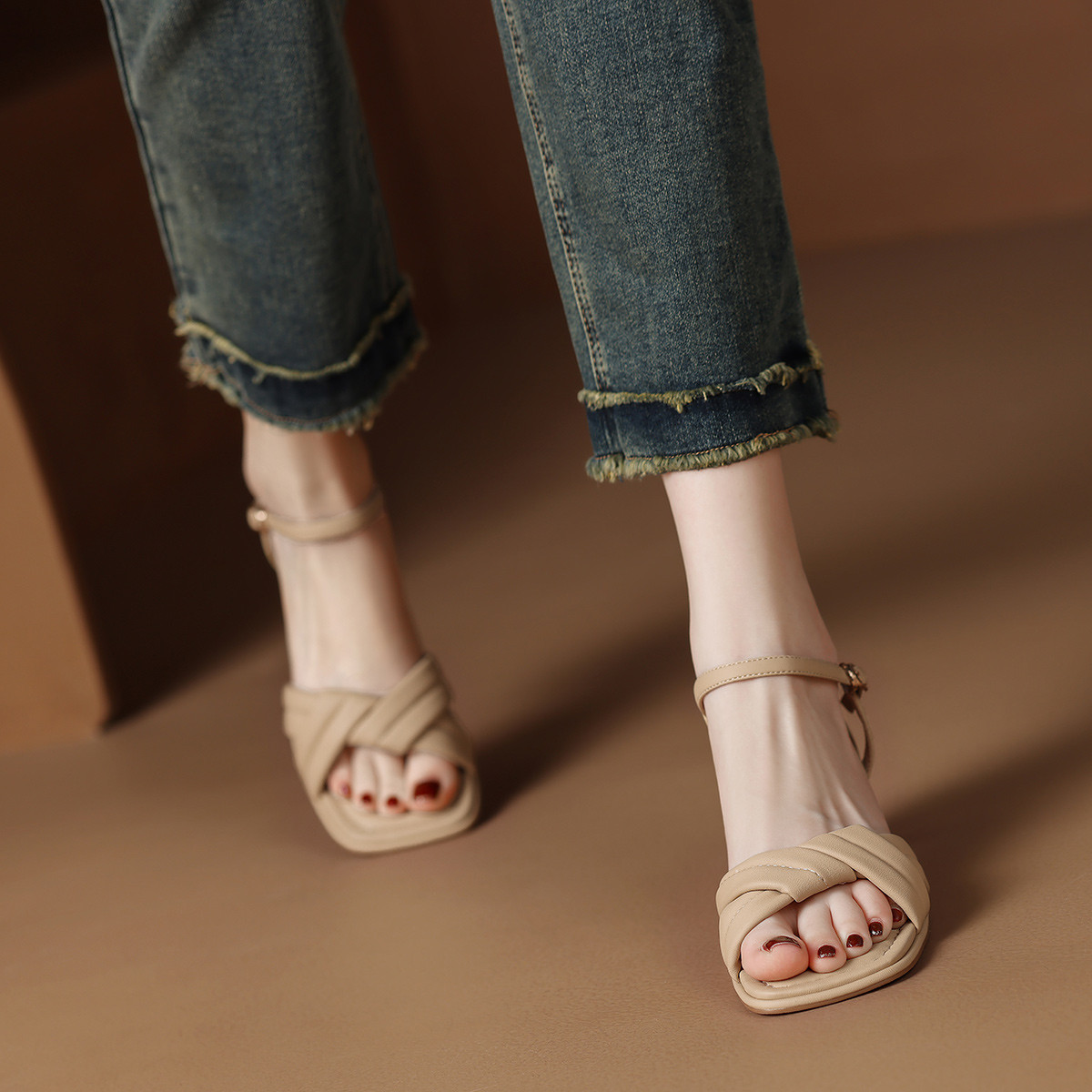 夏季新中式国风后空凉鞋女一字带高跟鞋轻便细跟时尚通勤鞋时装鞋 139351