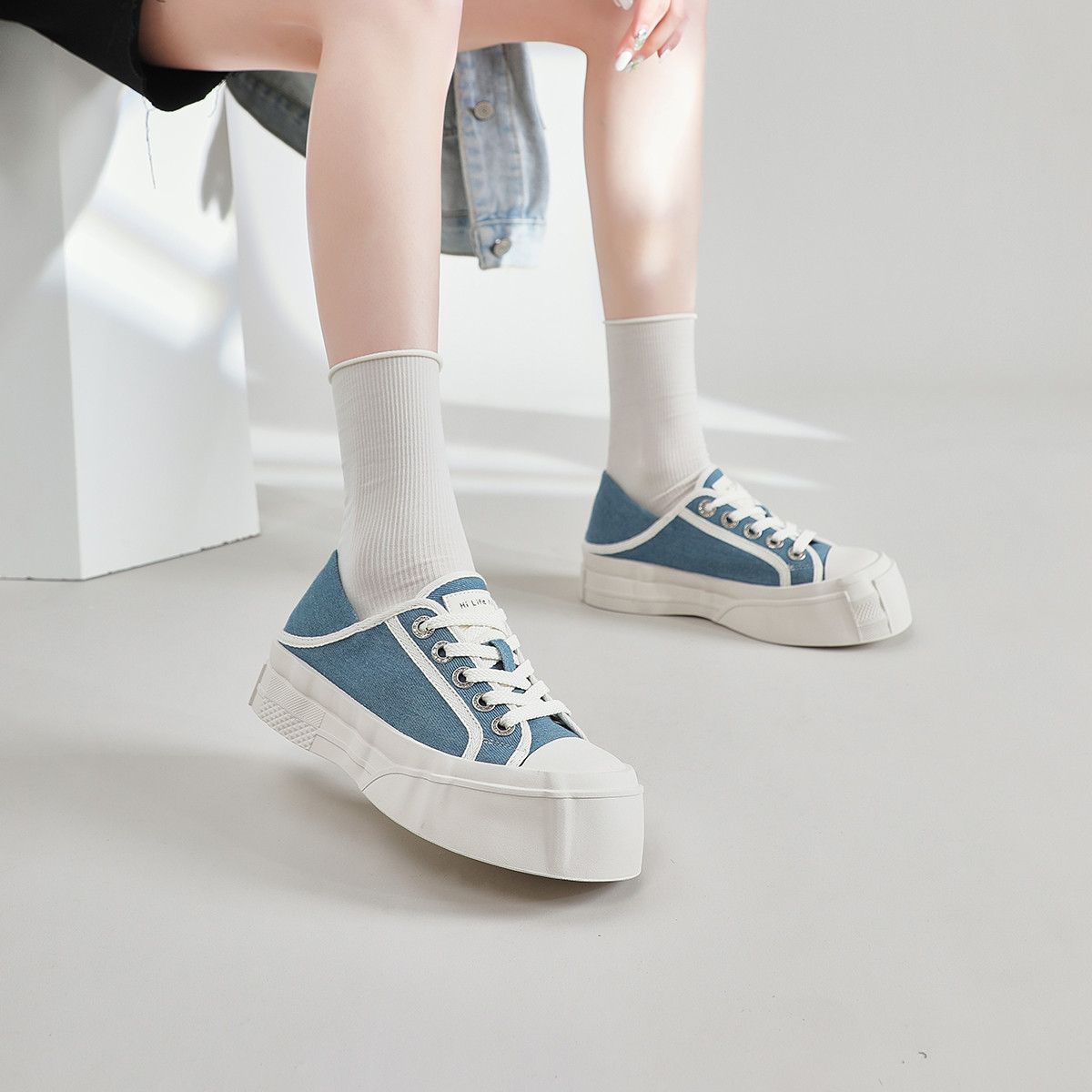 【拼色厚底板鞋】25女鞋春季款耐磨舒适休闲鞋女百搭小白鞋女 130964