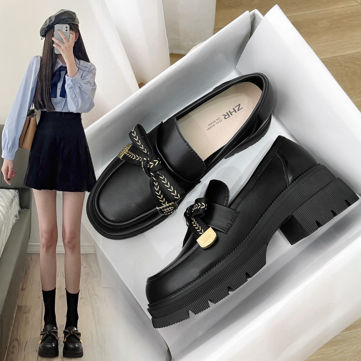 【牛剖层革】百搭英伦风小皮鞋子女单鞋通勤鞋春秋厚底乐福鞋女鞋 043968