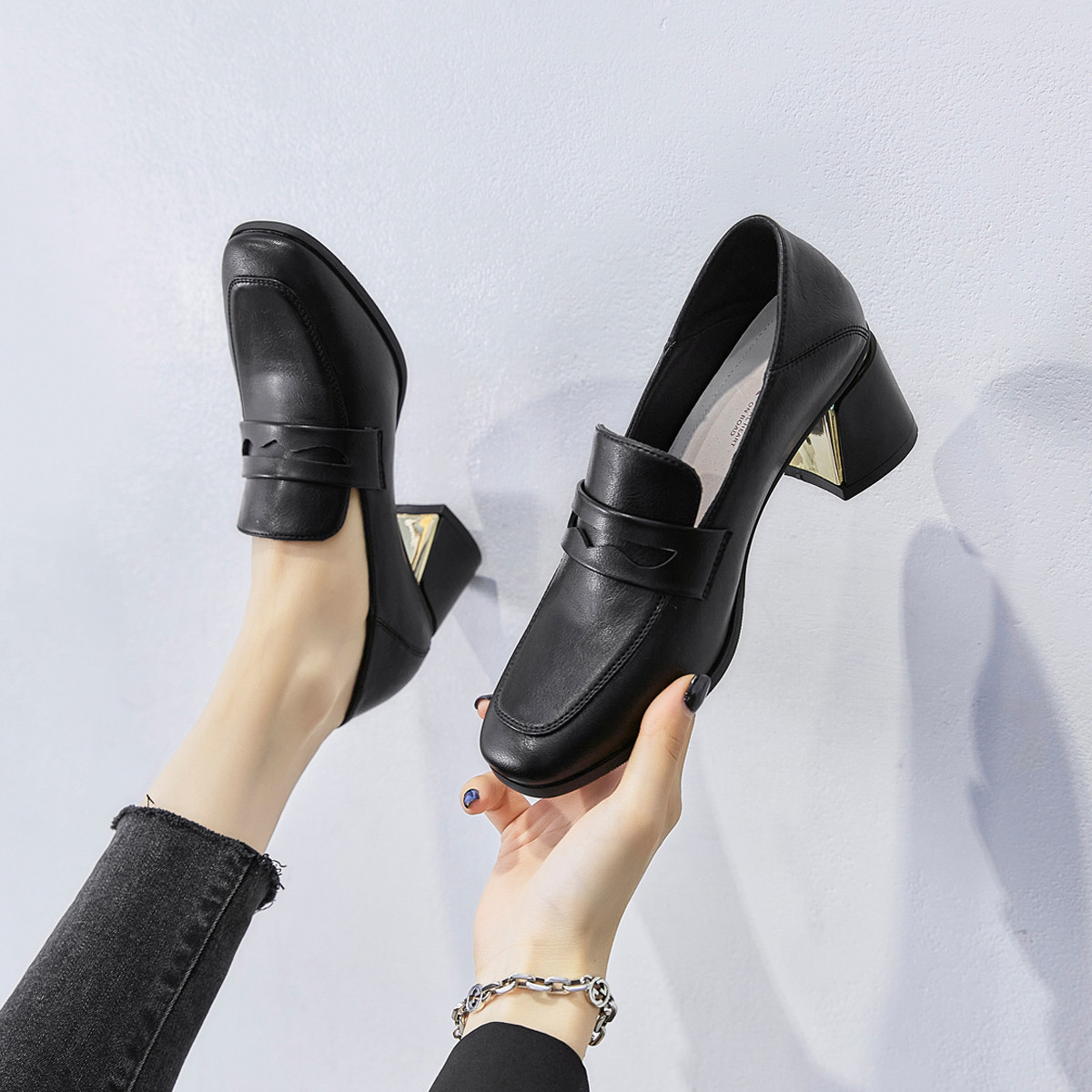 【秒高6CM】粗跟职业通勤鞋女小皮鞋子女春秋乐福鞋女单鞋女鞋 072576