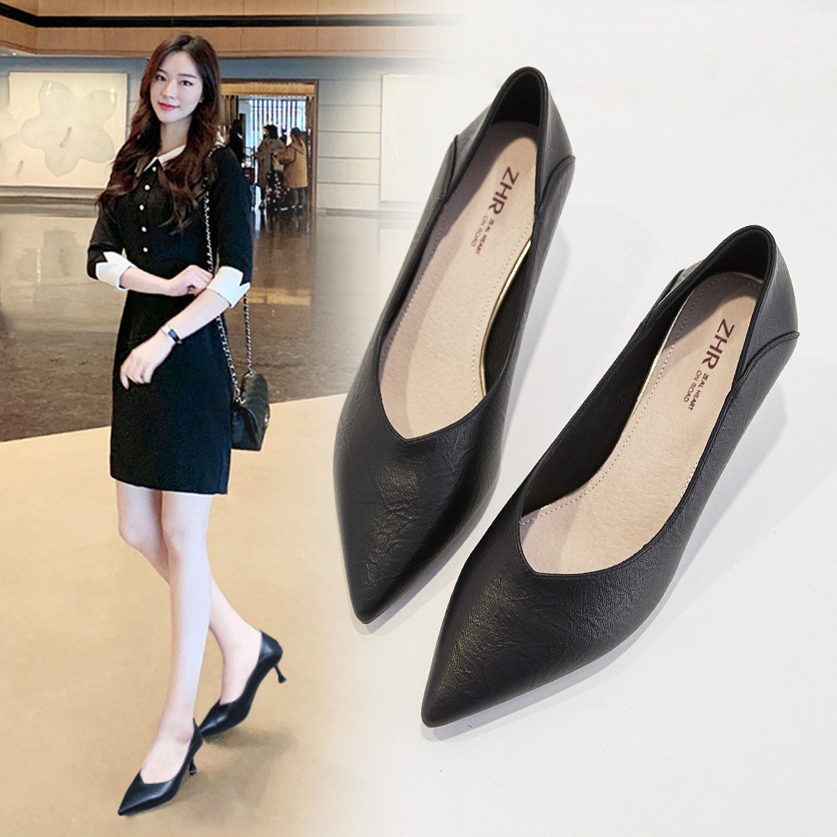 【优雅尖头】百搭黑色单鞋女一脚蹬女鞋春秋高跟鞋女细跟单鞋女鞋 370560