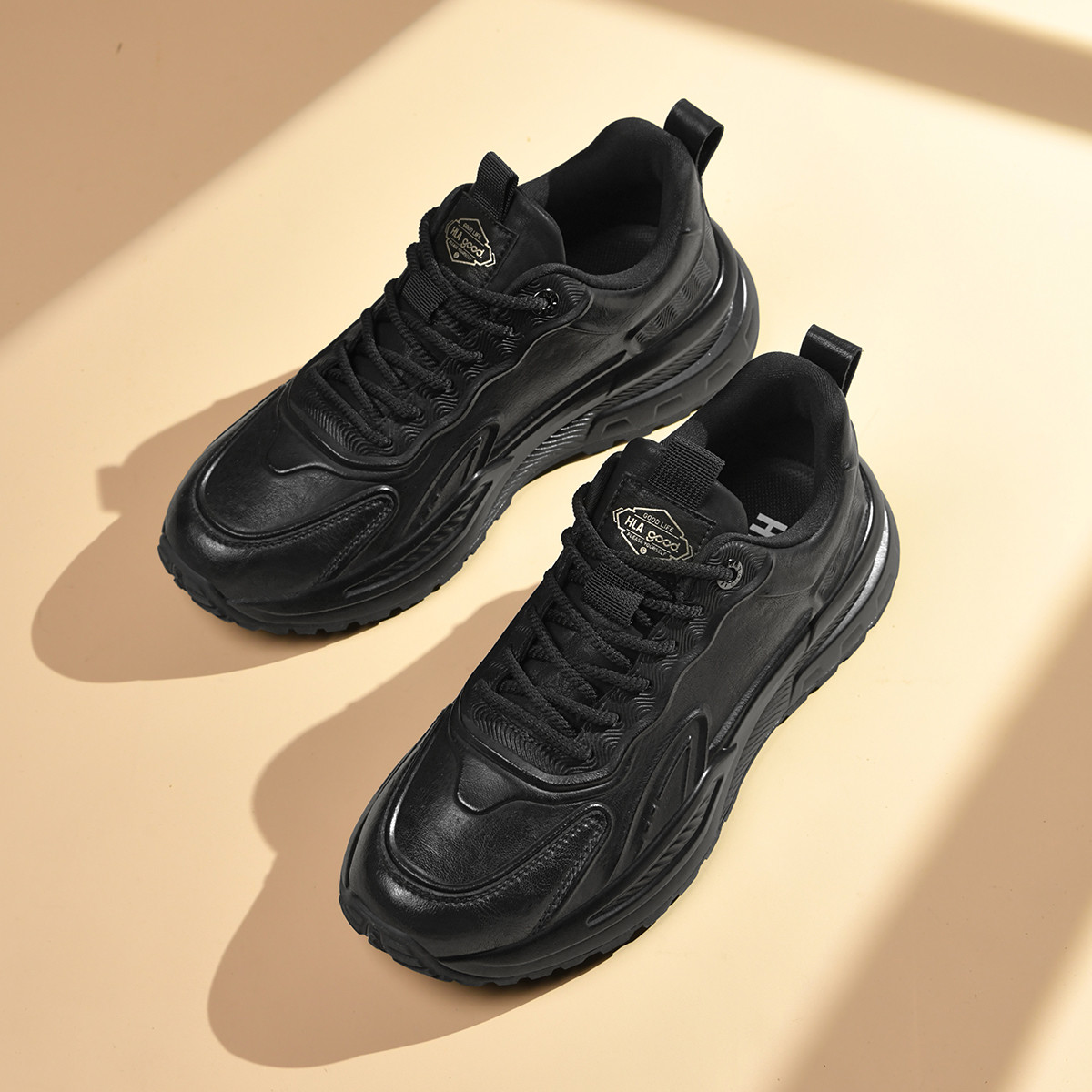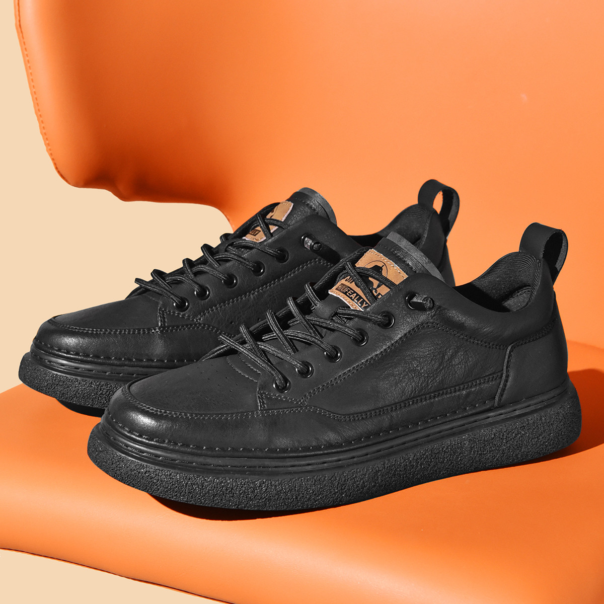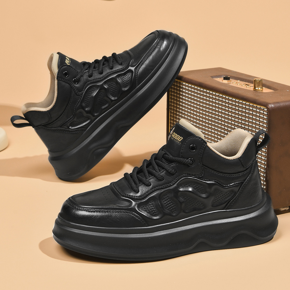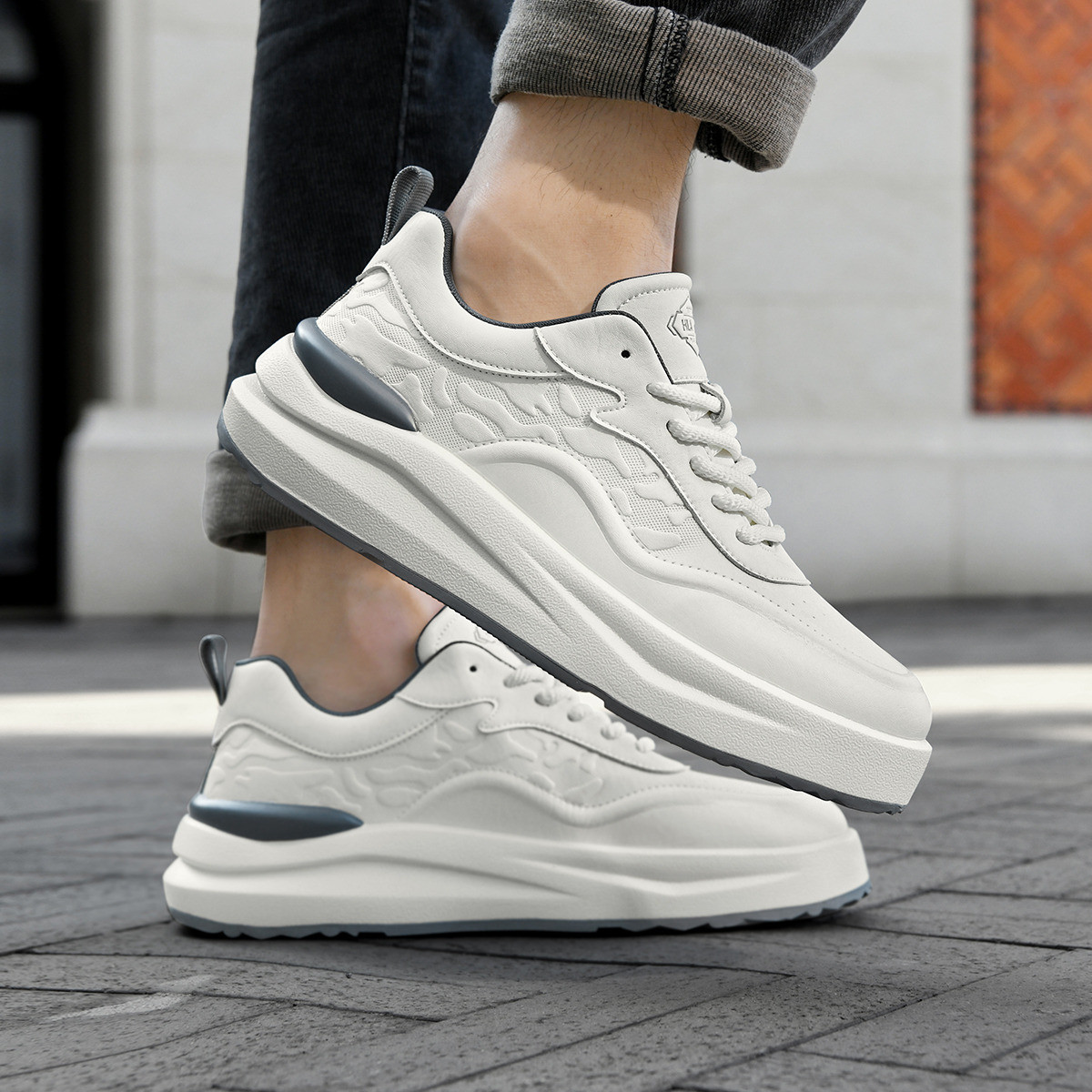 男鞋休闲运动鞋质感压纹百搭男士健步鞋纯色简约厚底运动鞋男 812303