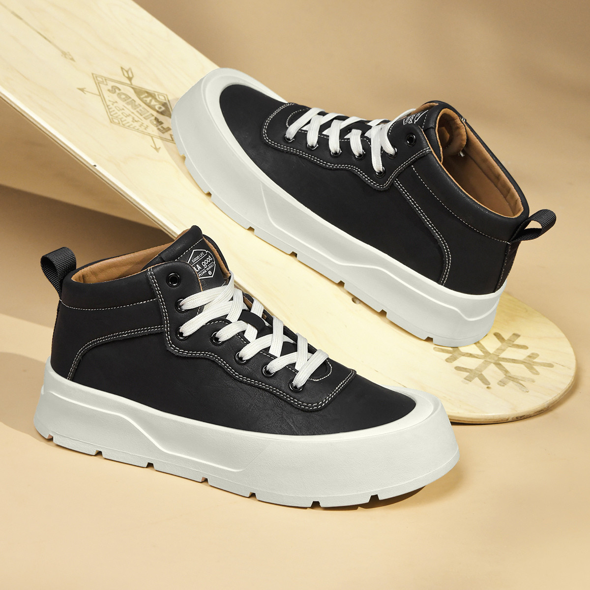 男士工装鞋男纯色质感百搭男鞋板鞋厚底中帮男生休闲鞋板鞋 808207