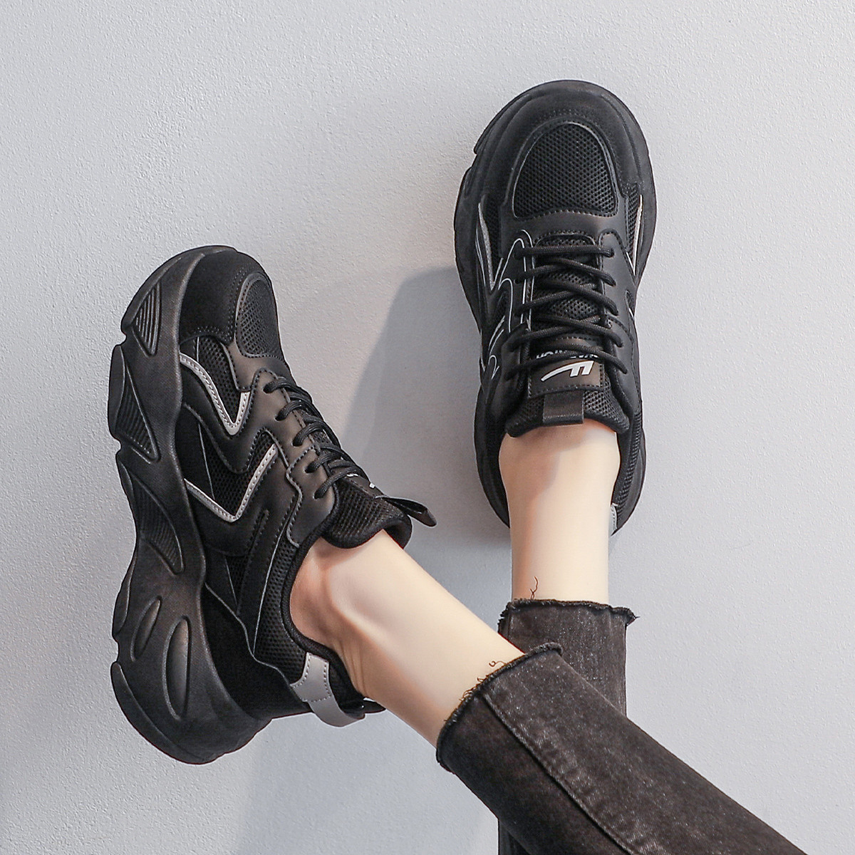 女鞋春秋季网面透气鞋子女厚底老爹鞋女士休闲鞋百搭运动鞋 694359
