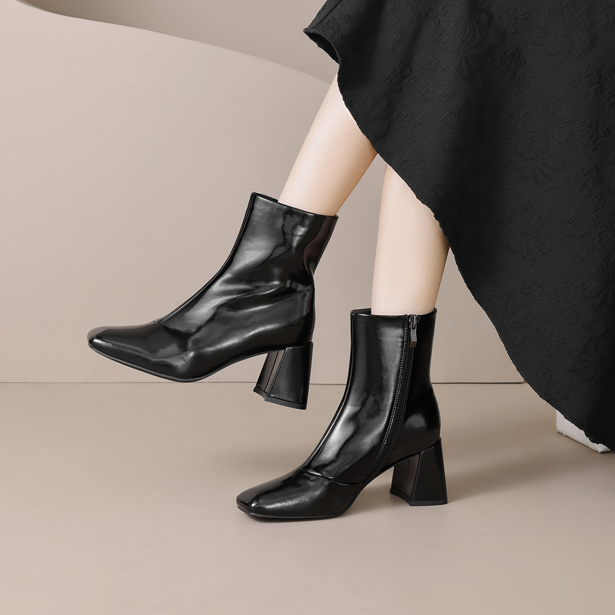 冬季时尚简约气质高级感韩系纯色斜切方头高跟时装靴女靴 394753