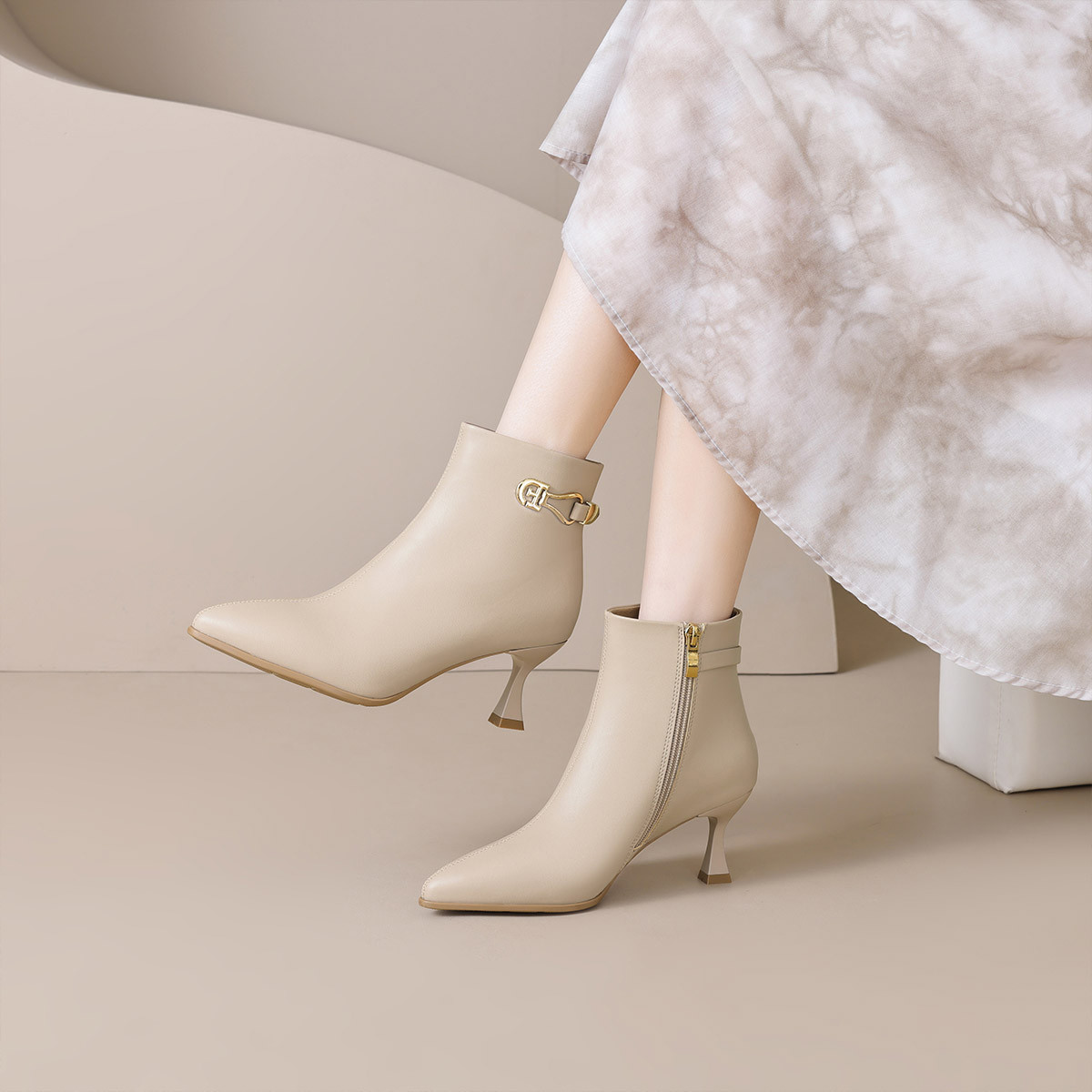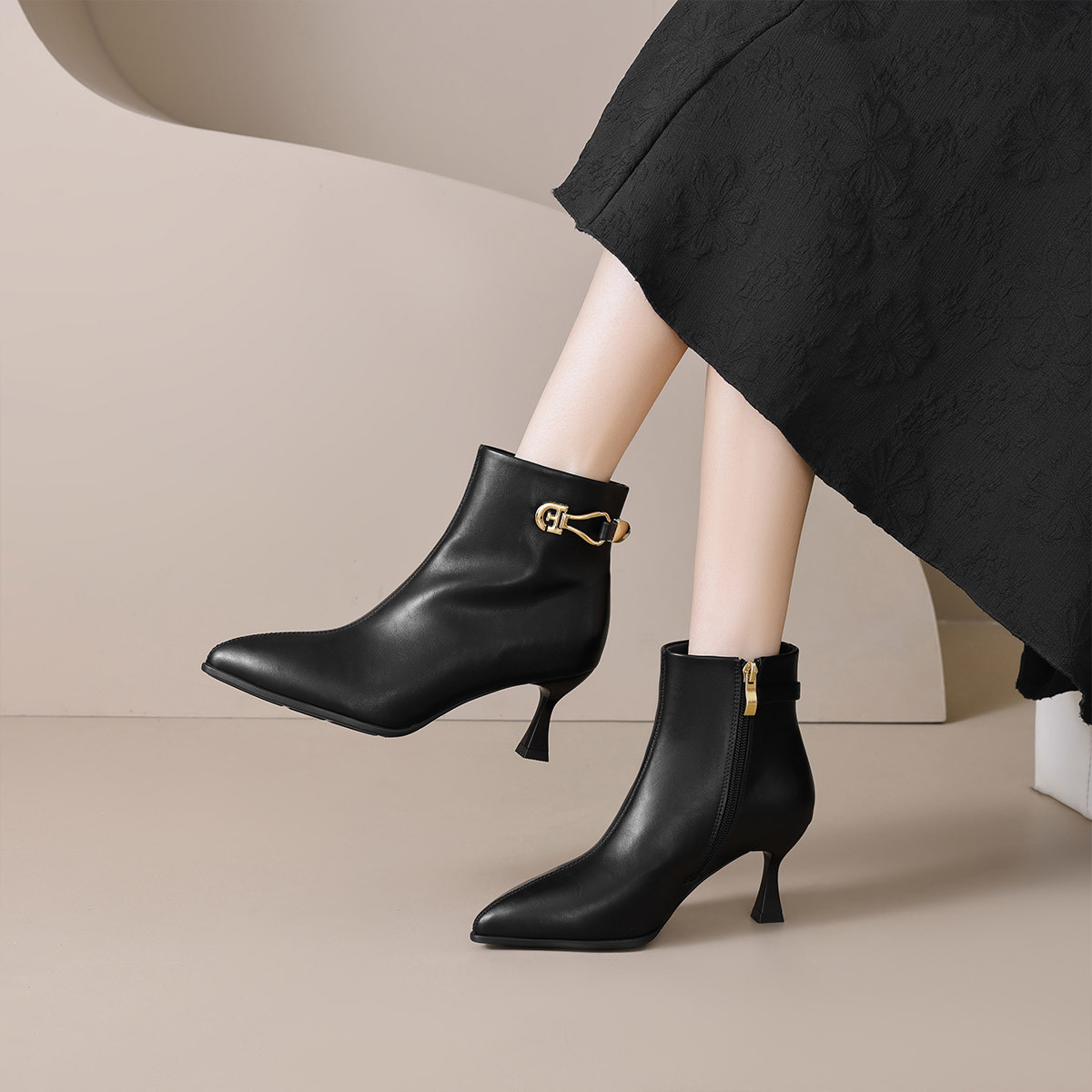 秋冬简约百搭日常通勤纯色气质长尾扣尖头时装靴女靴 374273