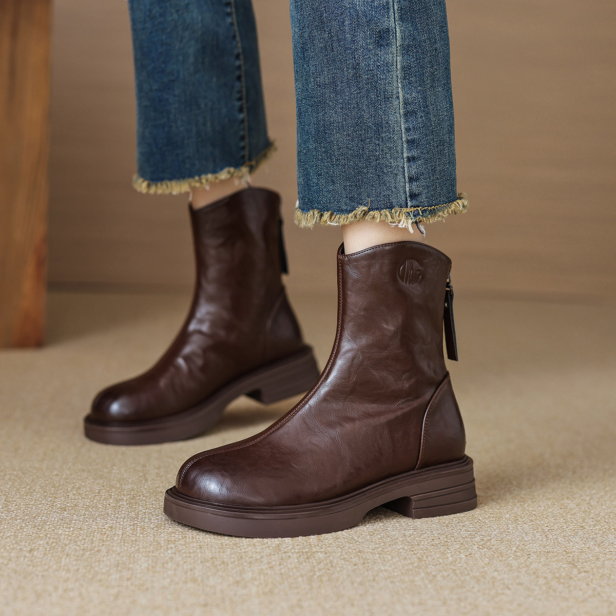 秋冬时尚简约纯色圆头舒适百搭日常通勤修饰腿型休闲女靴 157377