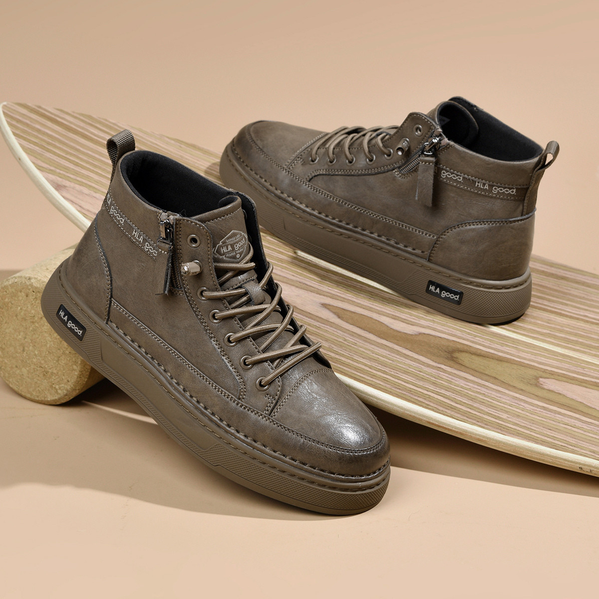 男鞋板鞋厚底中帮复古简约英伦风百搭男士工装鞋男休闲鞋 227087