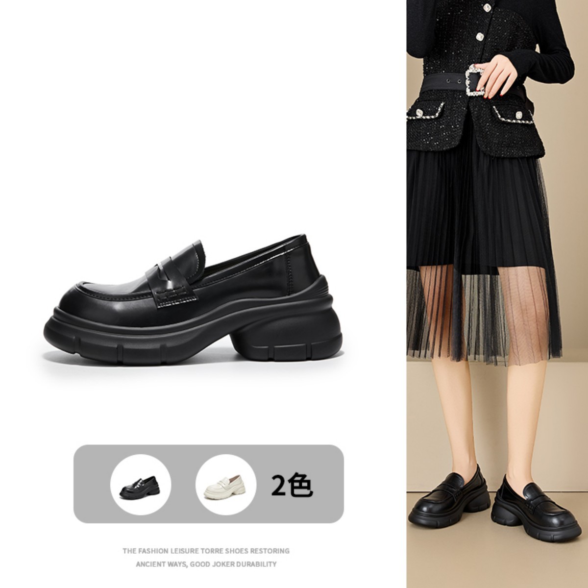 【简约百搭】春季英伦风厚底增高法式复古乐福鞋舒适通勤女单鞋 044698