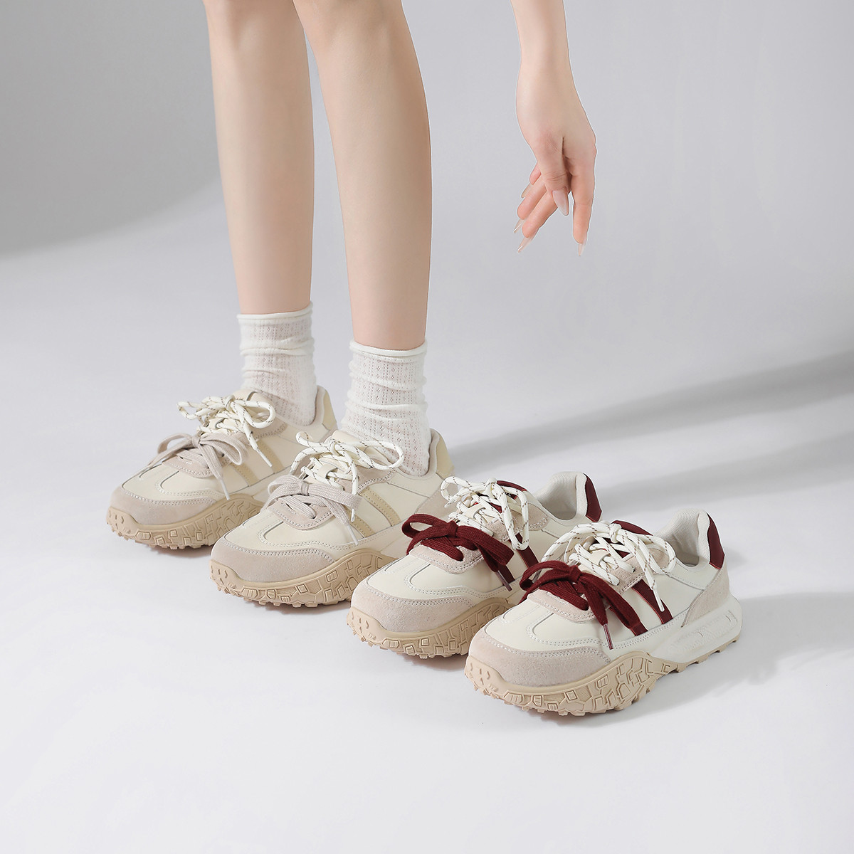 【春季爆款】复古潮流平底德训鞋百搭休闲鞋子女软底轻便板鞋女鞋 037405