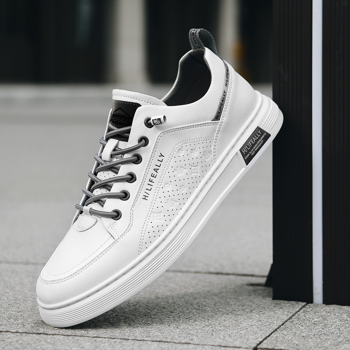 休闲鞋运动休闲鞋男板鞋冲孔透气男鞋板鞋免系带小白鞋男 522127