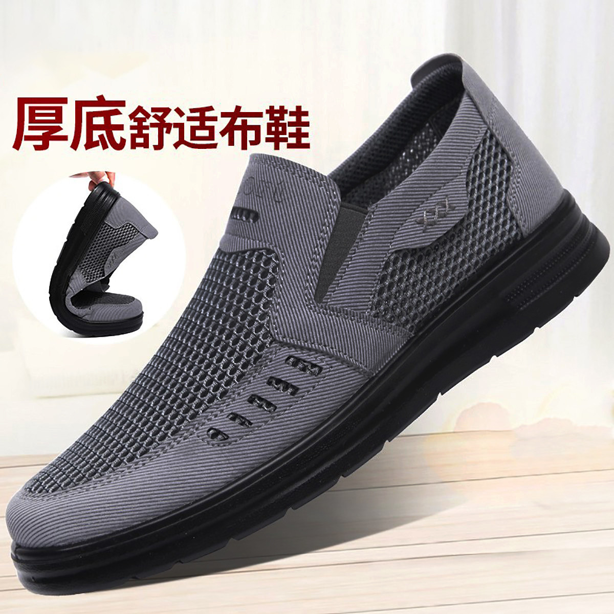 【舒适好穿】一脚蹬男鞋休闲网面鞋男士透气老北京布鞋百搭爸爸鞋 498949