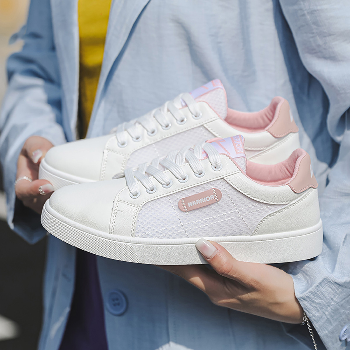 夏季小白鞋女轻便透气网面小白鞋学生舒适透气女款网面板鞋 483141