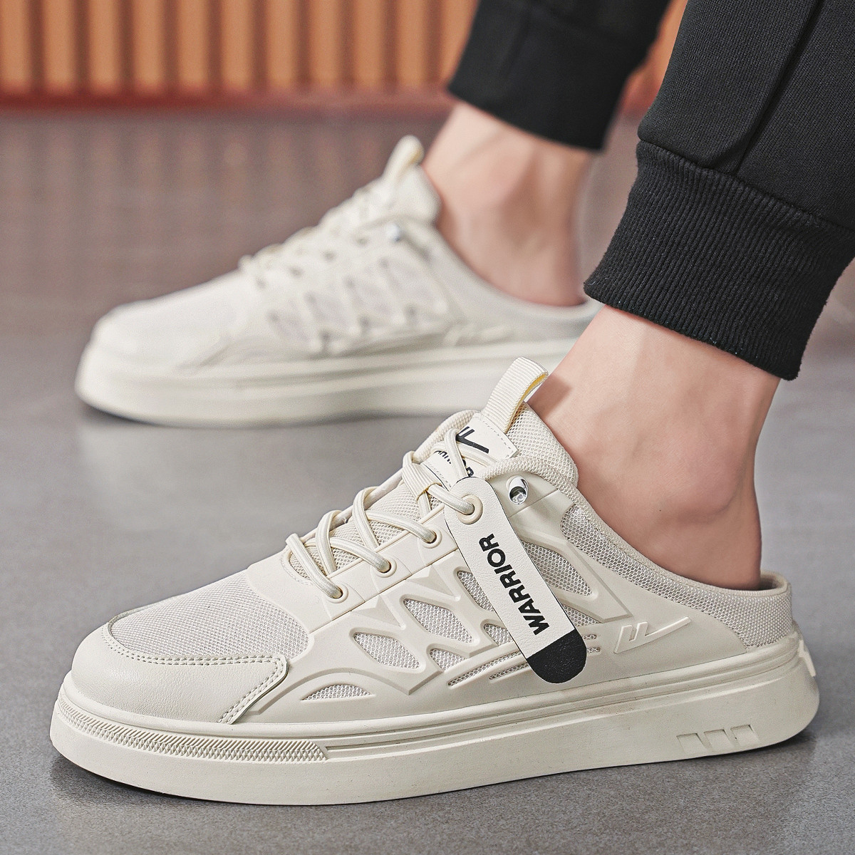 回力男鞋夏季网面透气半拖板鞋男百搭休闲鞋男一脚登懒人鞋 662672