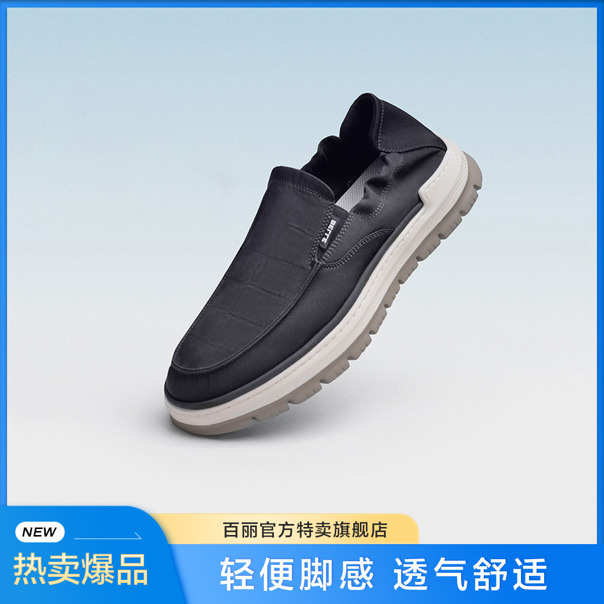 百丽轻盈厚底休闲鞋男鞋春新商场同款舒适一脚蹬布鞋 303770