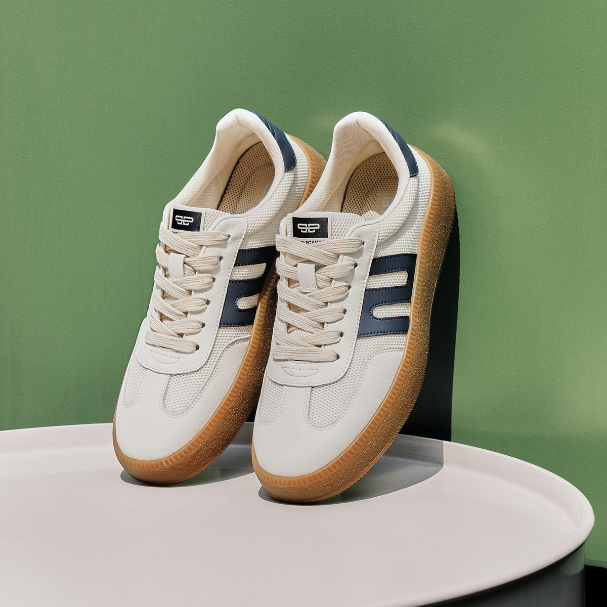 百丽男鞋透气网面轻便复古运动休闲跑步运动德训板鞋男款夏季 539034
