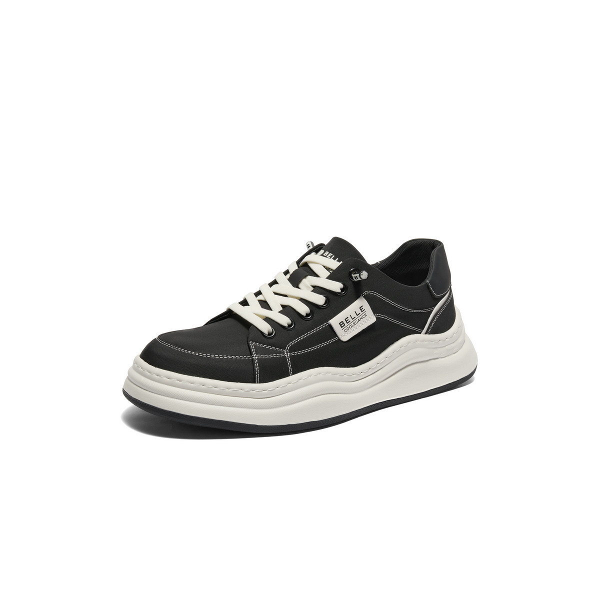百丽男鞋款夏季休闲透气真皮小白鞋运动鞋厚底增高板鞋子 886938