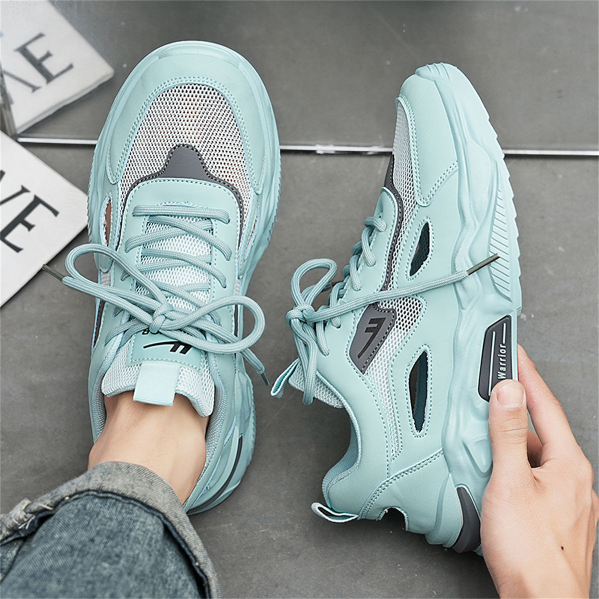【热卖潮鞋】男鞋透气网面鞋男复古休闲鞋厚底男士运动鞋 868175