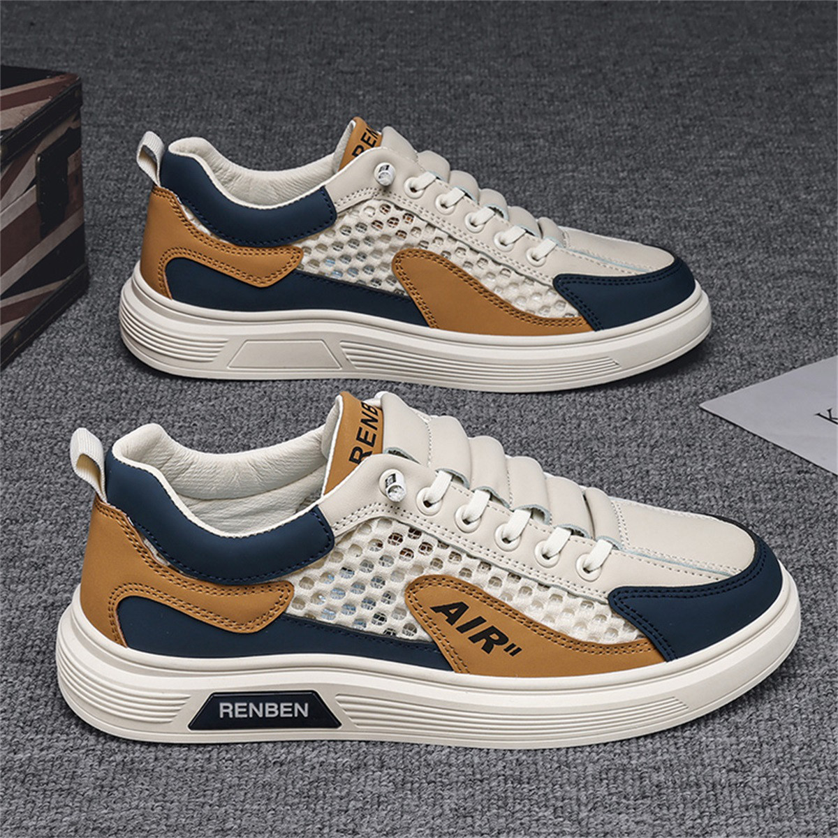 镂空网面男鞋春季百搭透气舒适休闲鞋男款时尚学生复古运动板鞋男 620183