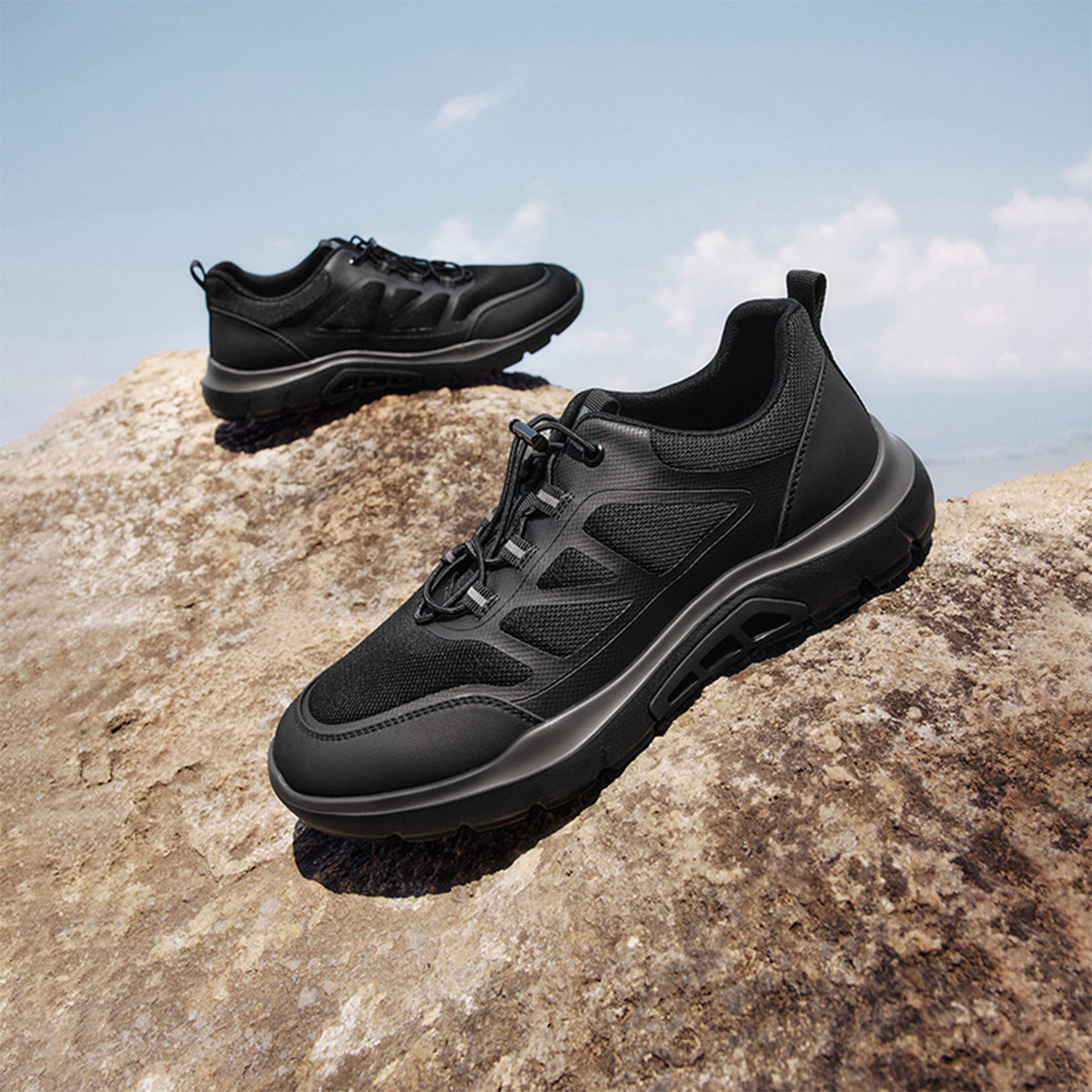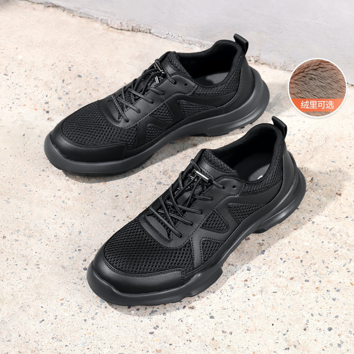 百丽男鞋厚底休闲商务皮鞋春秋款黑色轻便运动健步鞋子 587994