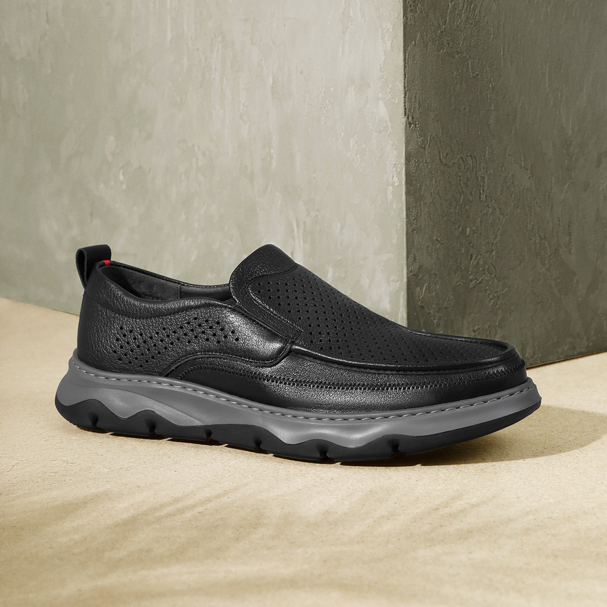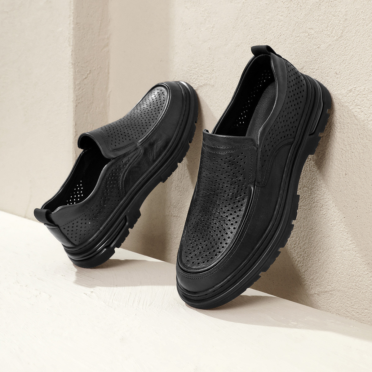 【冲孔透气】百丽套脚懒人鞋男款春牛皮革透气商务休闲皮鞋 895962