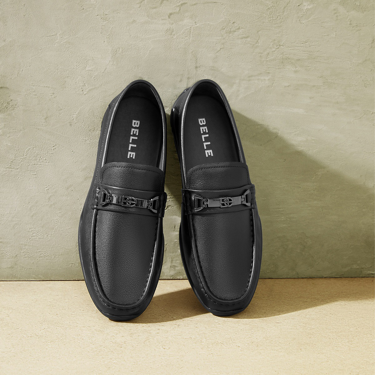 百丽男鞋商务皮鞋一脚蹬休闲皮鞋男套脚豆豆乐福鞋子 050906