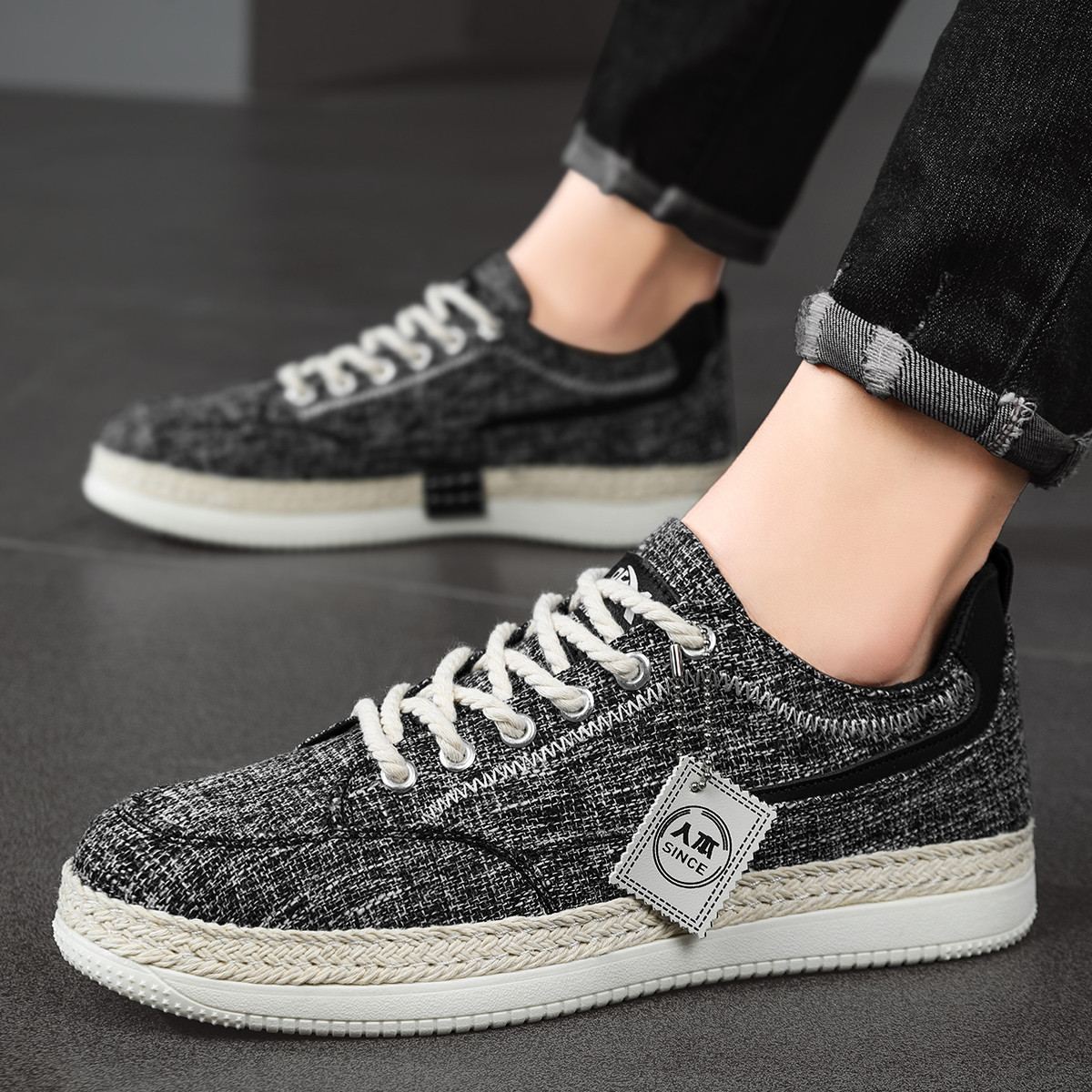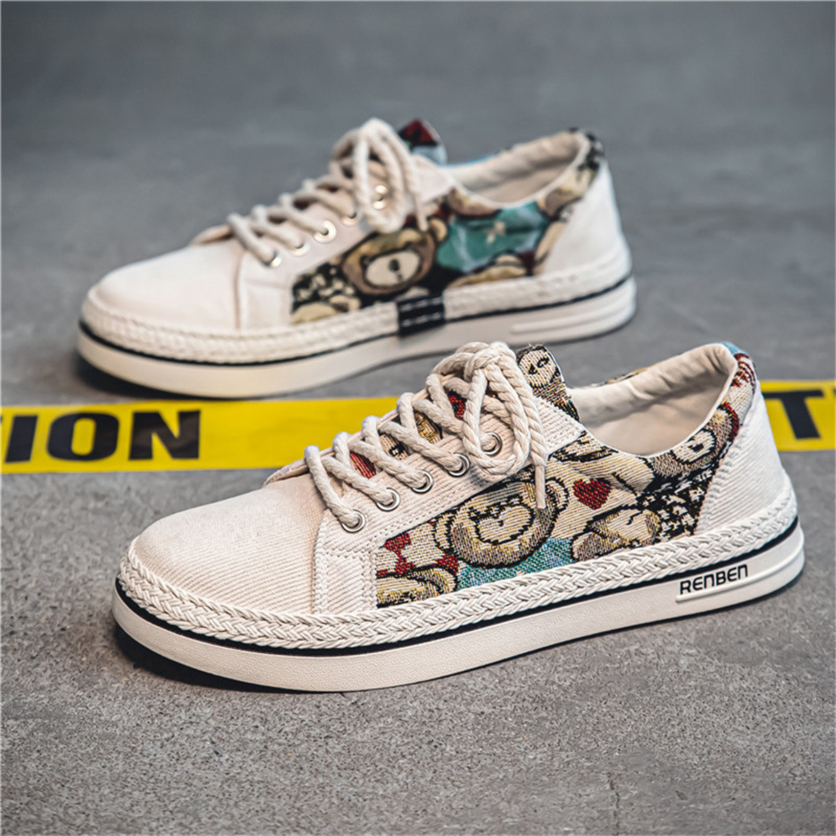 潮流男鞋织物设计卡通编织个性款男百搭休闲低帮男士板鞋学生鞋 506583