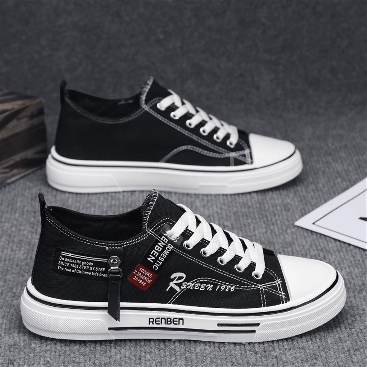 复古潮流男休闲帆布鞋舒适轻便透气运动鞋男时尚滑板鞋 225559