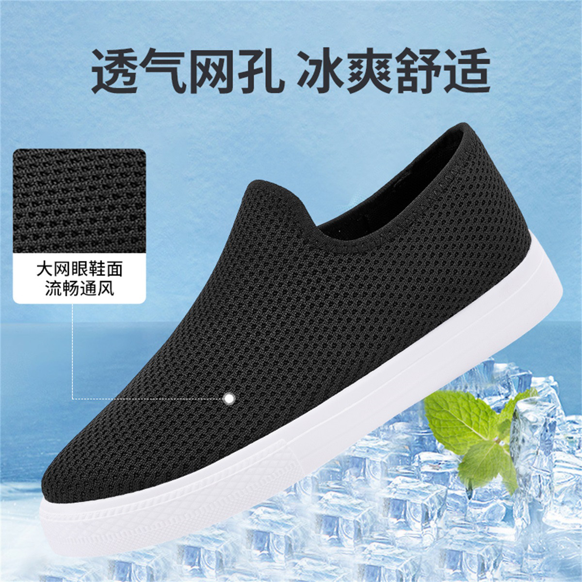 妈妈鞋春季女鞋爆款透气网面轻便休闲鞋女中老年一脚蹬礼仪鞋女 271941