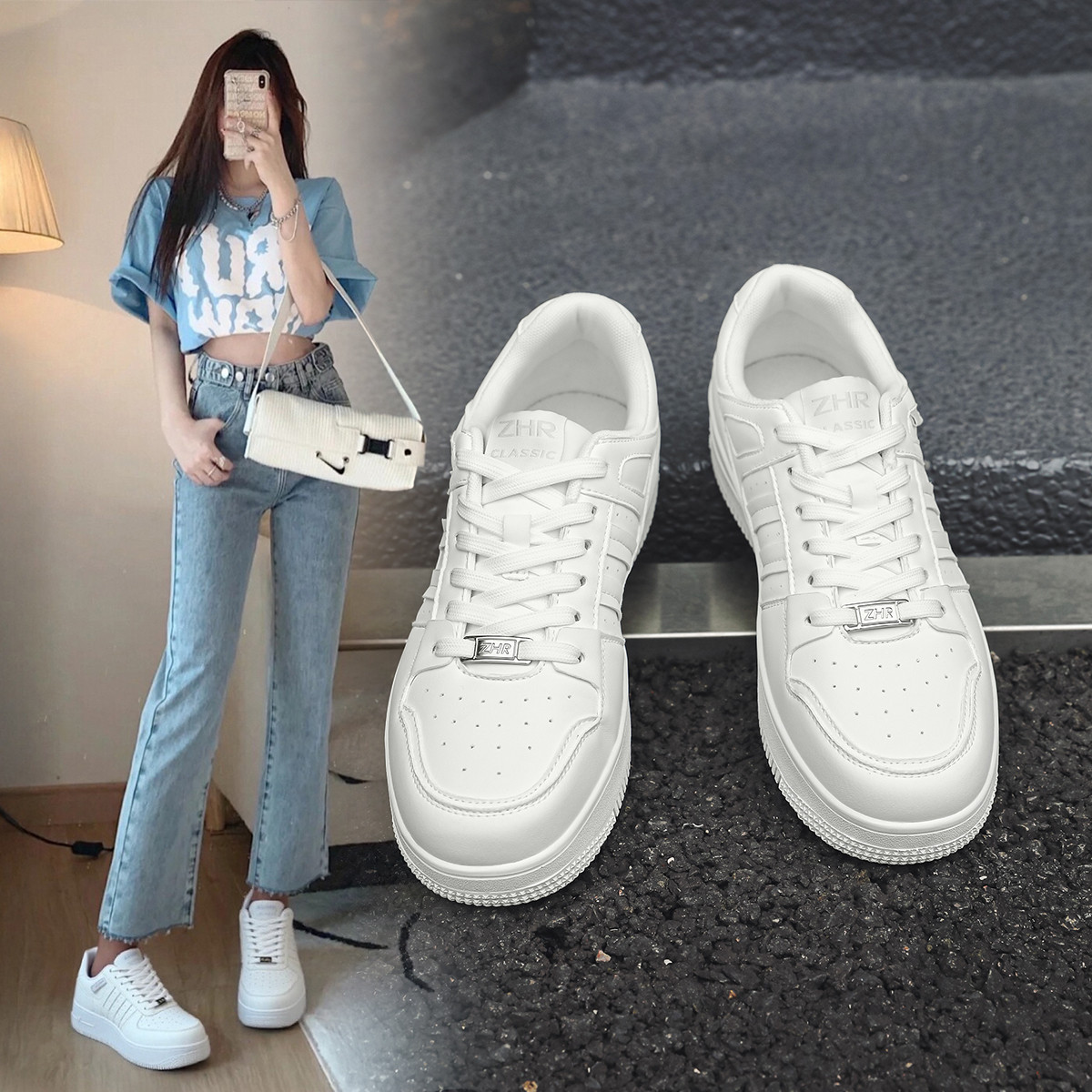 【春季爆款】厚底增高小白鞋女时尚潮流百搭轻便休闲板鞋松糕鞋子 100381