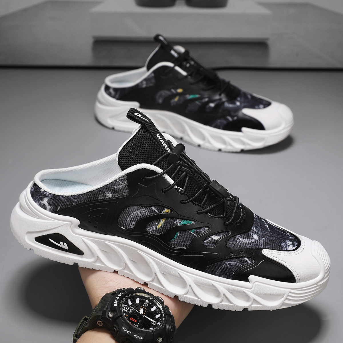 【热销爆款】25男鞋网面半拖鞋男透气休闲鞋潮流百搭一脚蹬男鞋 048148