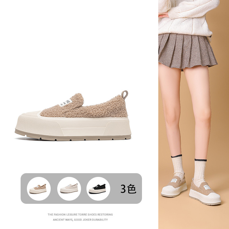 秋冬季加绒时尚板鞋厚底鞋舒适保暖户外运动休闲鞋毛绒百搭鞋子 473367