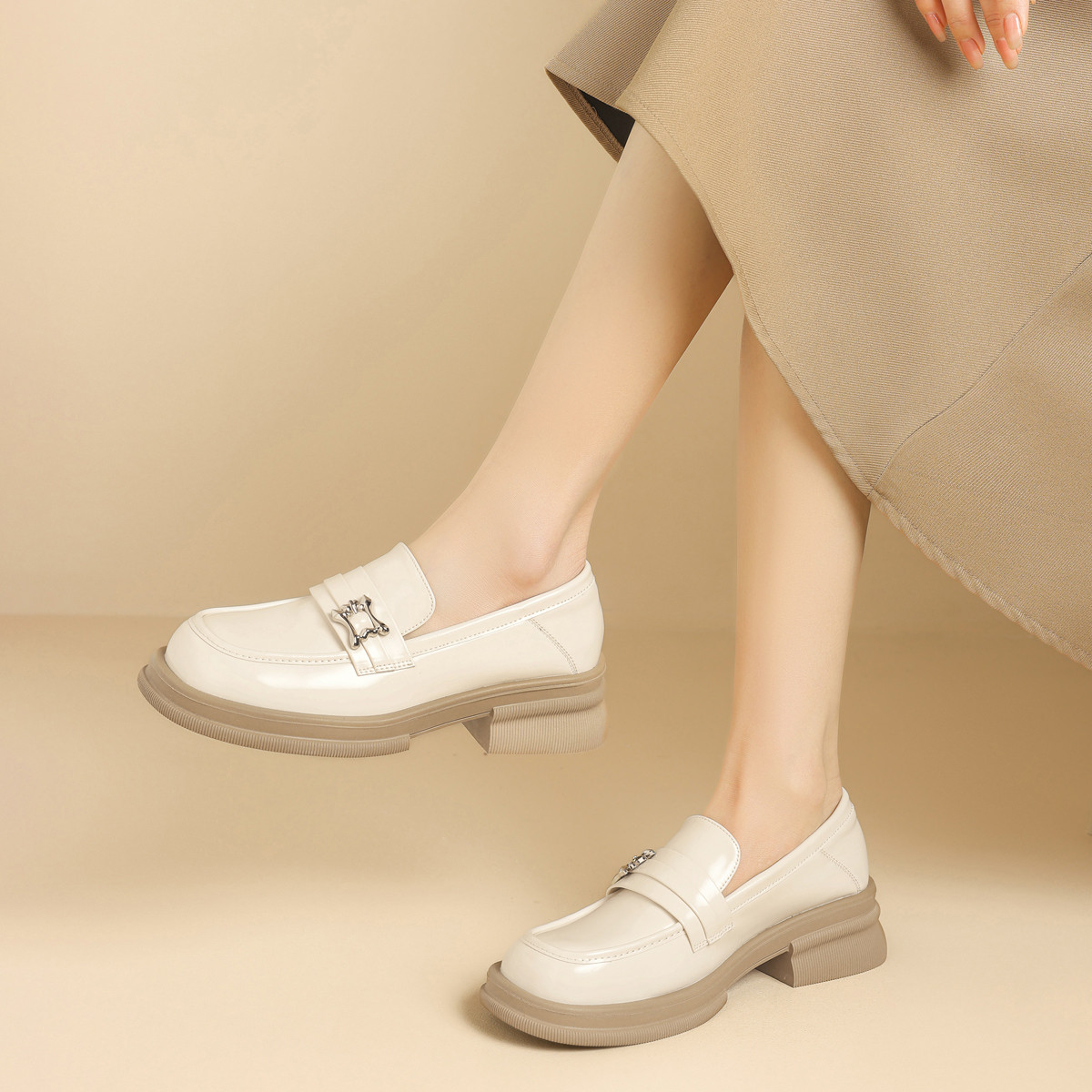 【头层牛皮】金属搭扣增高小皮鞋2025春季厚底乐福鞋女单鞋 393344