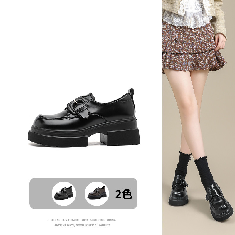 英伦风女鞋春季新款2025年通勤鞋子厚底增高单鞋女乐福鞋女鞋 376599