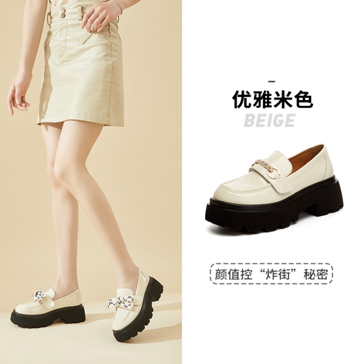 【爆款推荐】夏季女单鞋时尚系带乐福鞋厚底增高女鞋JK制服鞋 037911