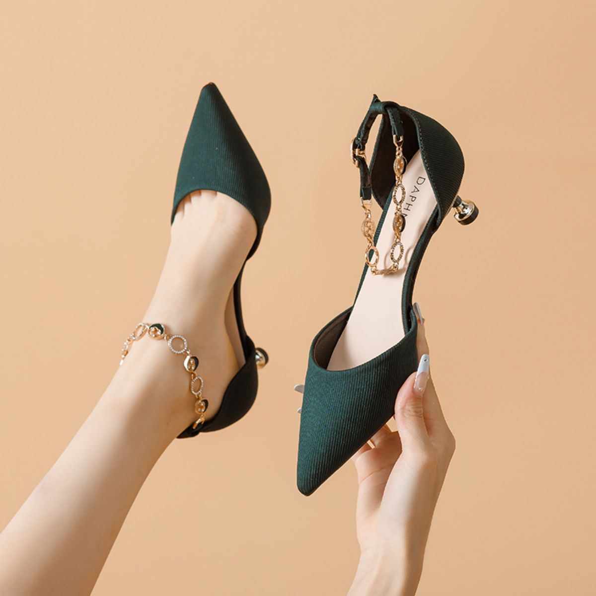 【热卖爆款】夏季百搭女士尖头高跟鞋中空凉鞋尖头高级感女单鞋 759959