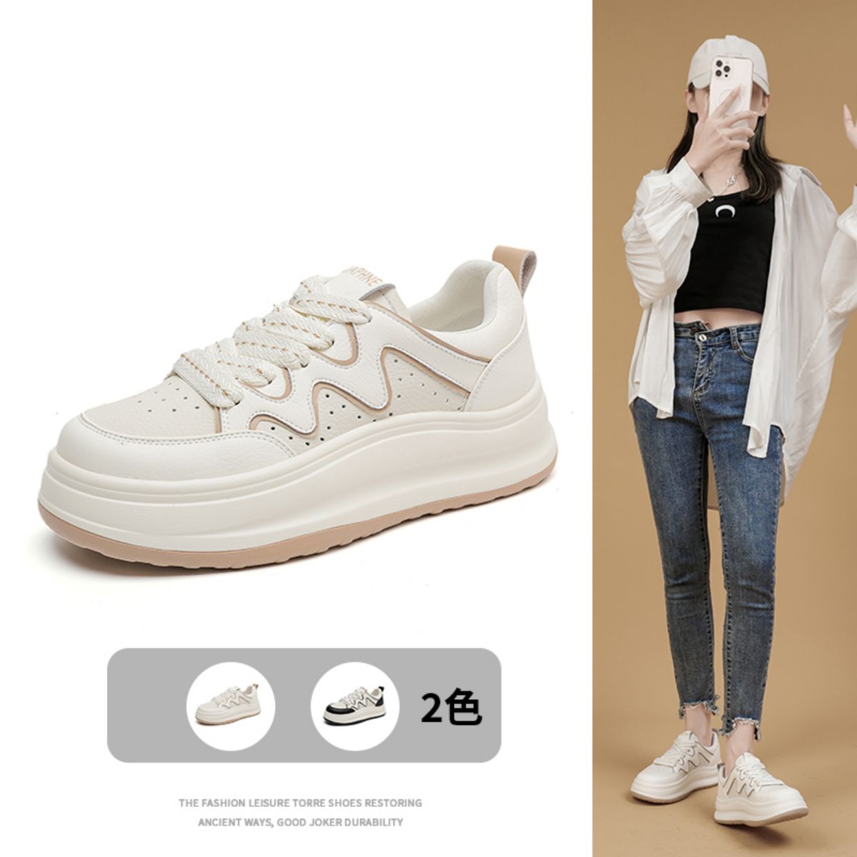 【热销爆款】春季板鞋复古休闲鞋运动鞋厚底面包鞋小白鞋女鞋 901786