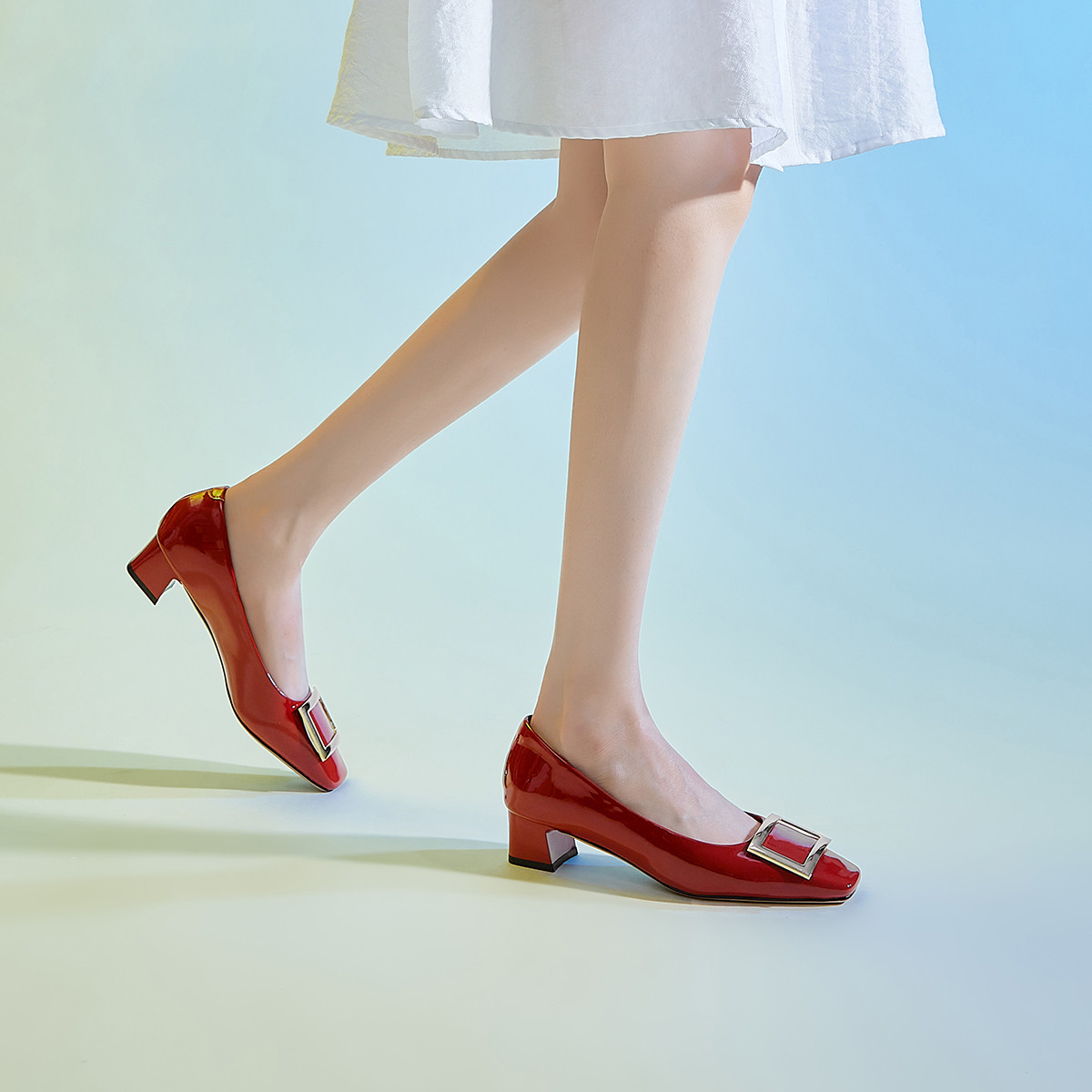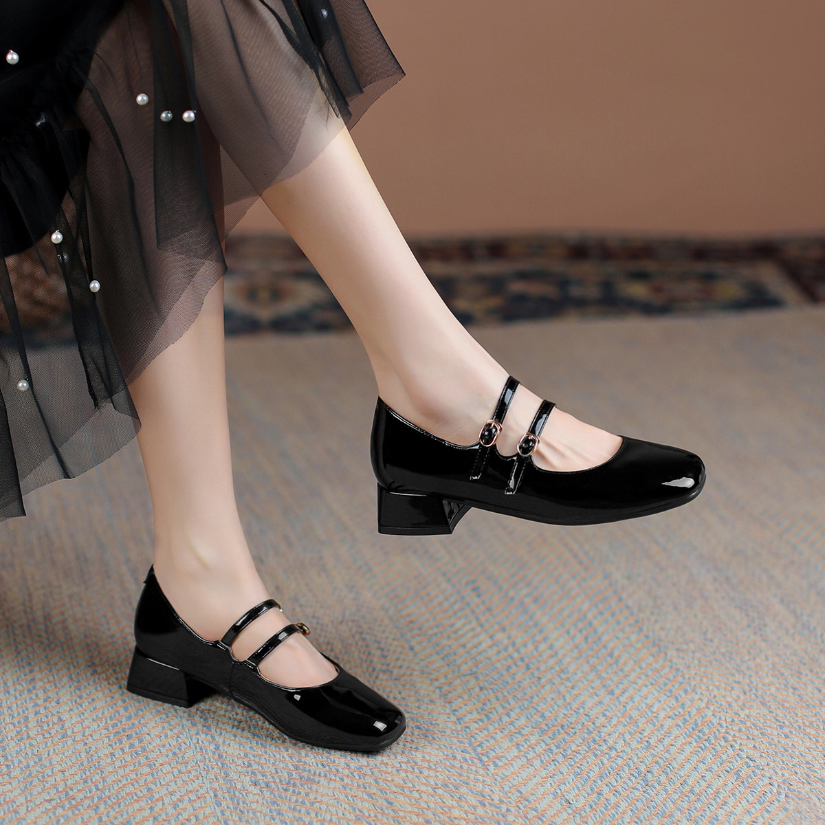 【双带搭扣】复古粗跟浅口单鞋小皮鞋子夏季玛丽珍女鞋女士单鞋女 101568