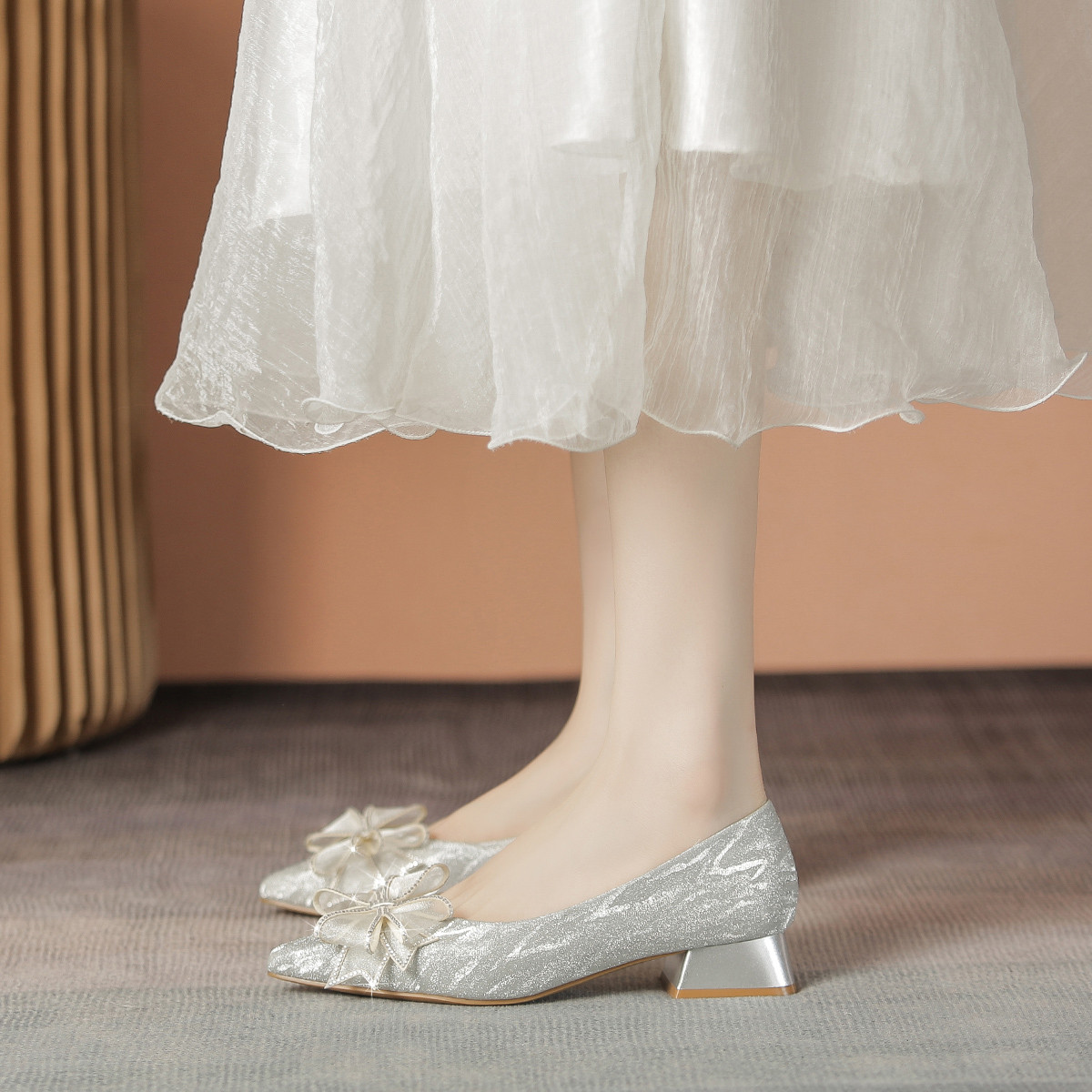 【梦幻蝴蝶结】百搭婚鞋时装鞋通勤鞋子女粗跟单鞋夏季一脚蹬女鞋 996608