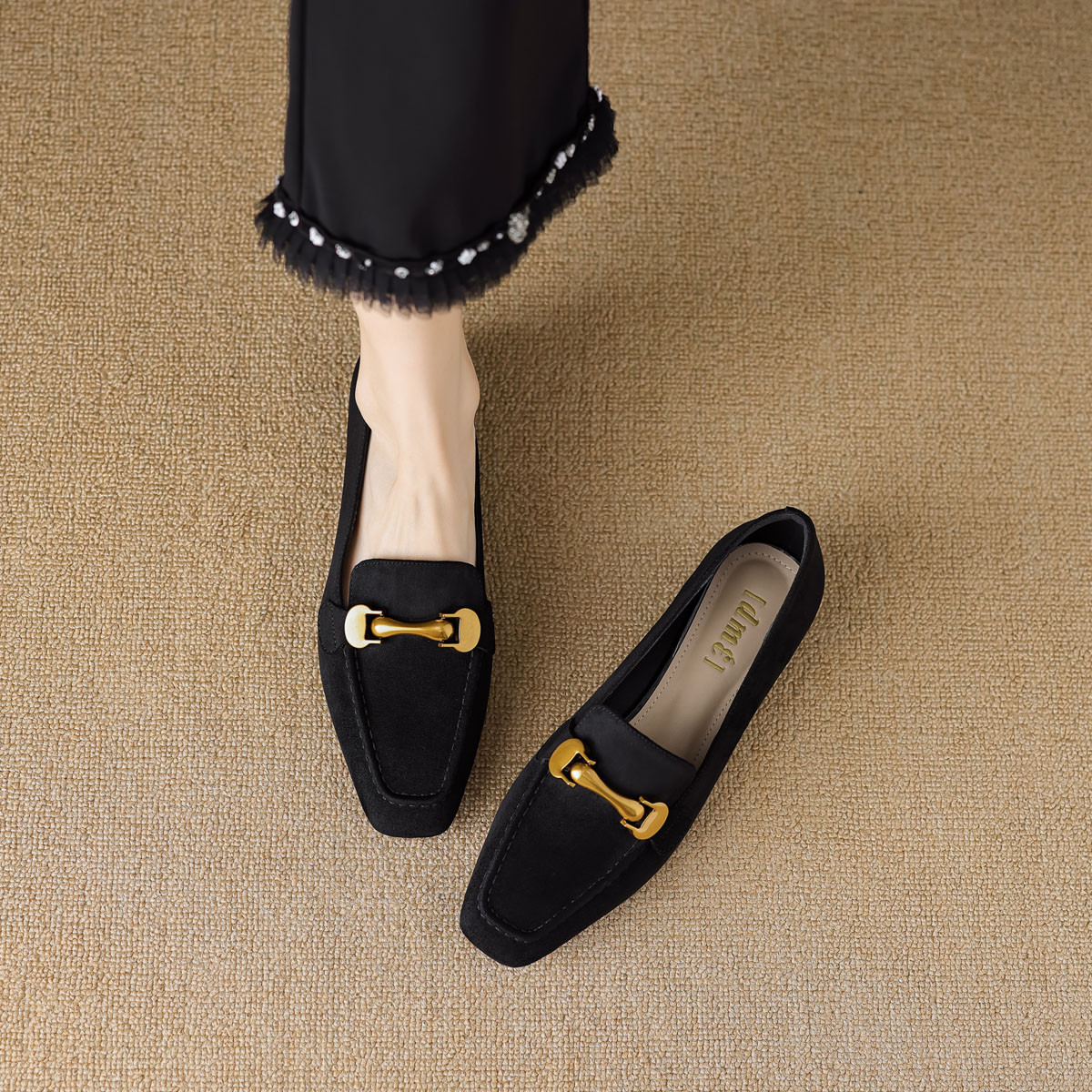 春复古时尚简约百搭纯色深口金属饰扣乐福鞋女单鞋 240321