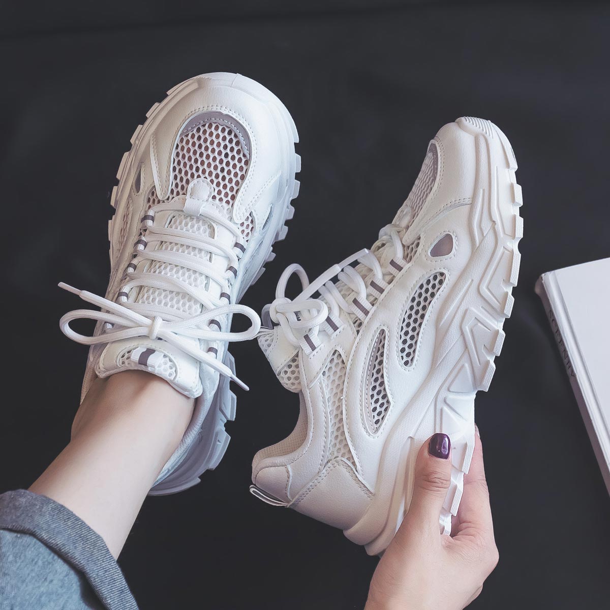 【镂空网面+内增高】透气休闲鞋子女运动鞋女老爹鞋女小白鞋女鞋 873536