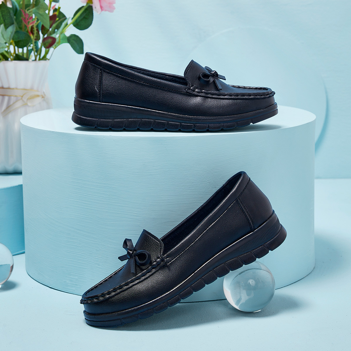 【轻便单鞋】女鞋夏季款户外休闲皮面鞋一脚蹬妈妈鞋百搭豆豆鞋 297182